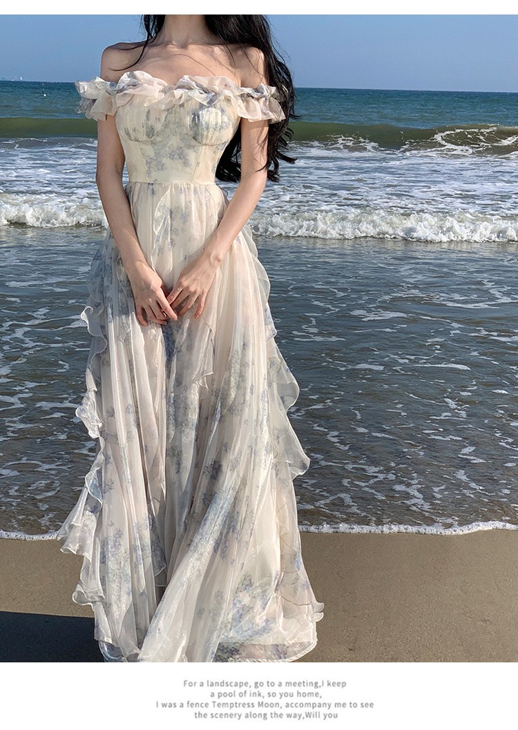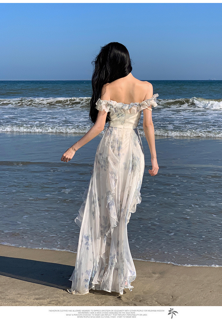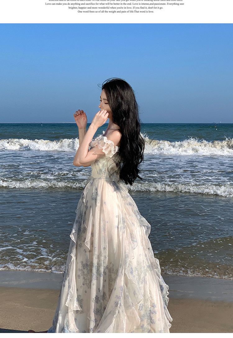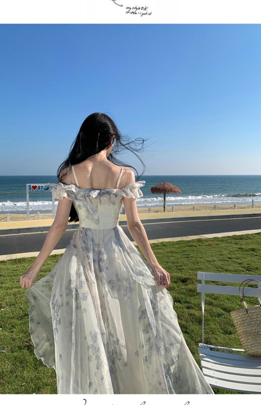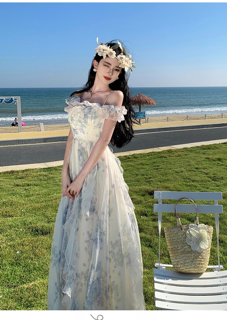 海边度假风吊带裙纱法式荷叶边沙滩连衣裙氛围感长裙飘逸仙女范