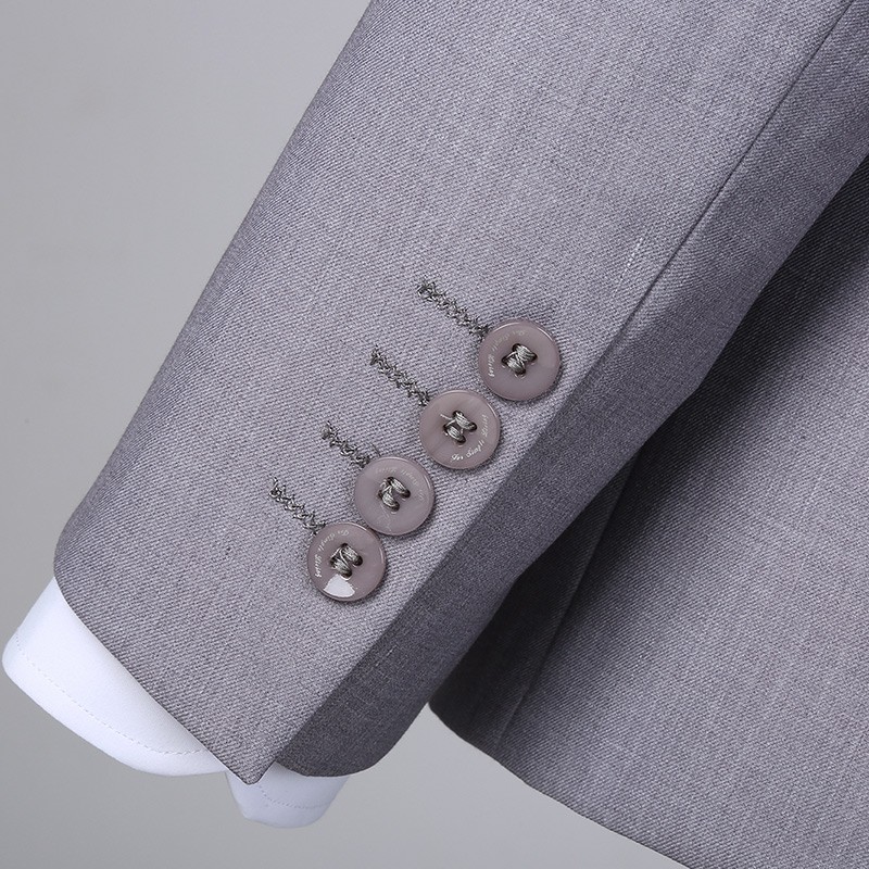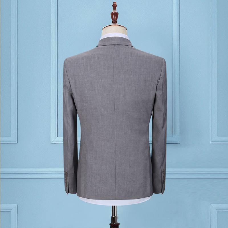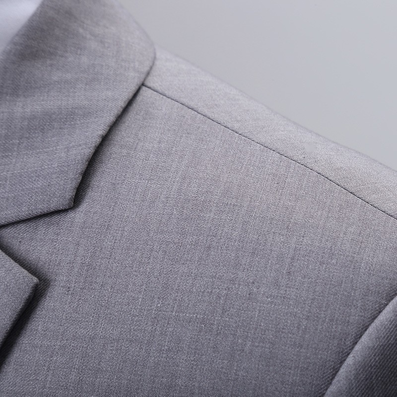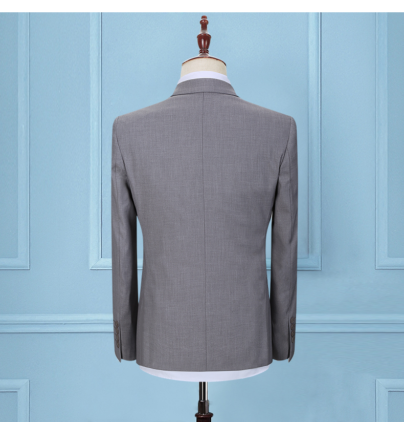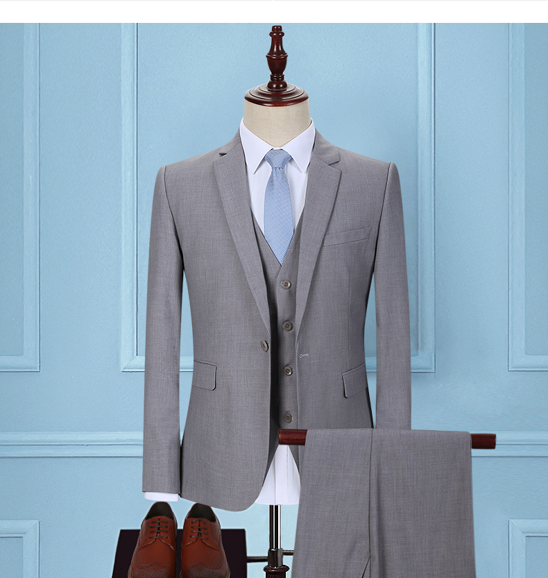 浅灰色男士西服套装韩版修身三件套商务休闲职业正装新郎结婚礼服