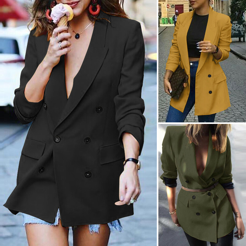 Zanzea妇女超大纽扣底西装外套肩垫外套外套加上