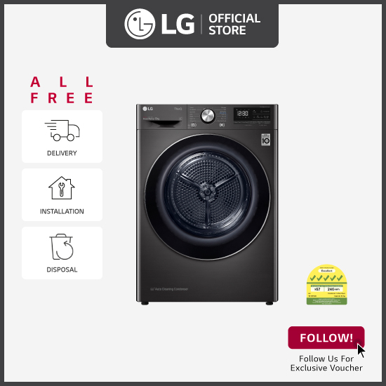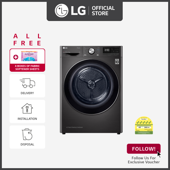 [笨重] LG TD-H90VBD 9KG双逆变器热泵干衣机(黑色) +免费的4盒织物软化器 +免费送货 +安装 +免费处置