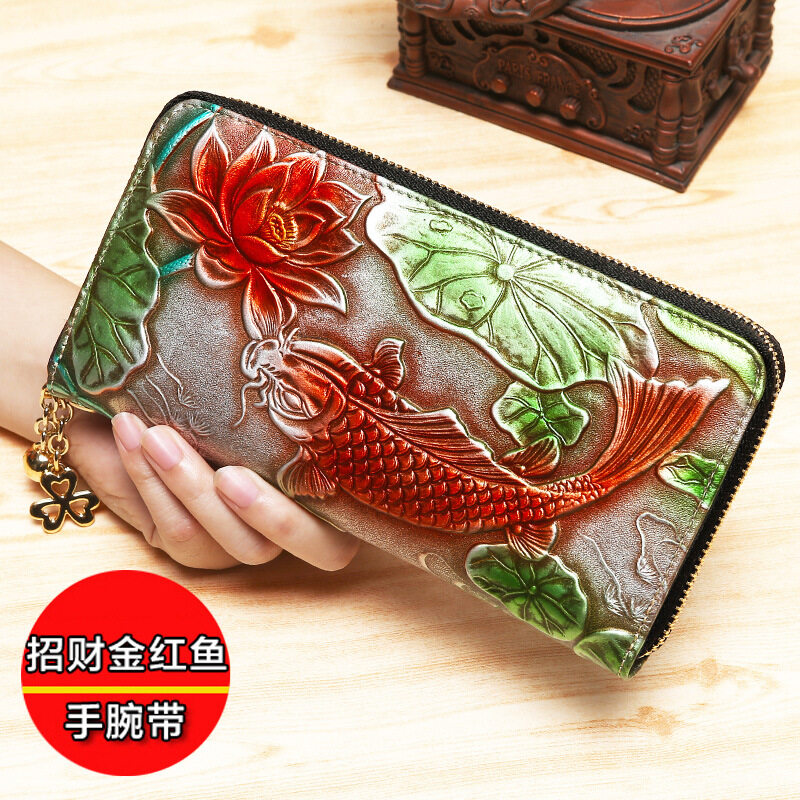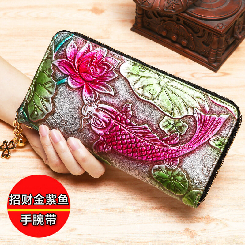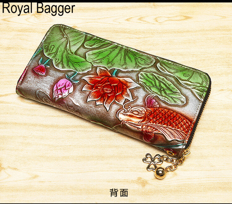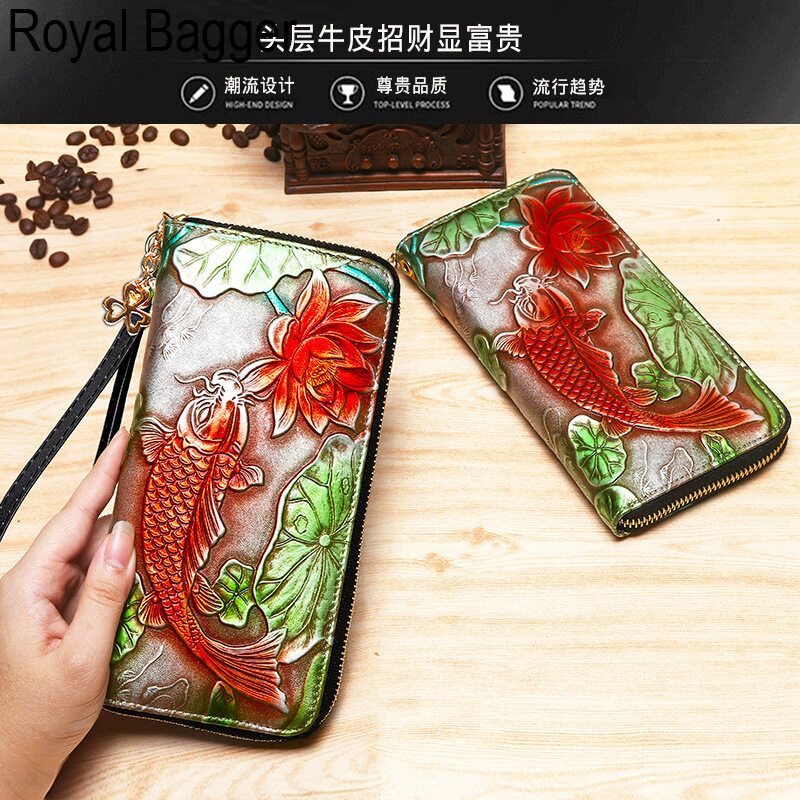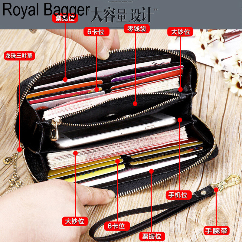 皇家袋装新时尚拉链长钱包钱包,妇女真正的牛皮革复古手拿包蒙蒂卡姿势电话袋