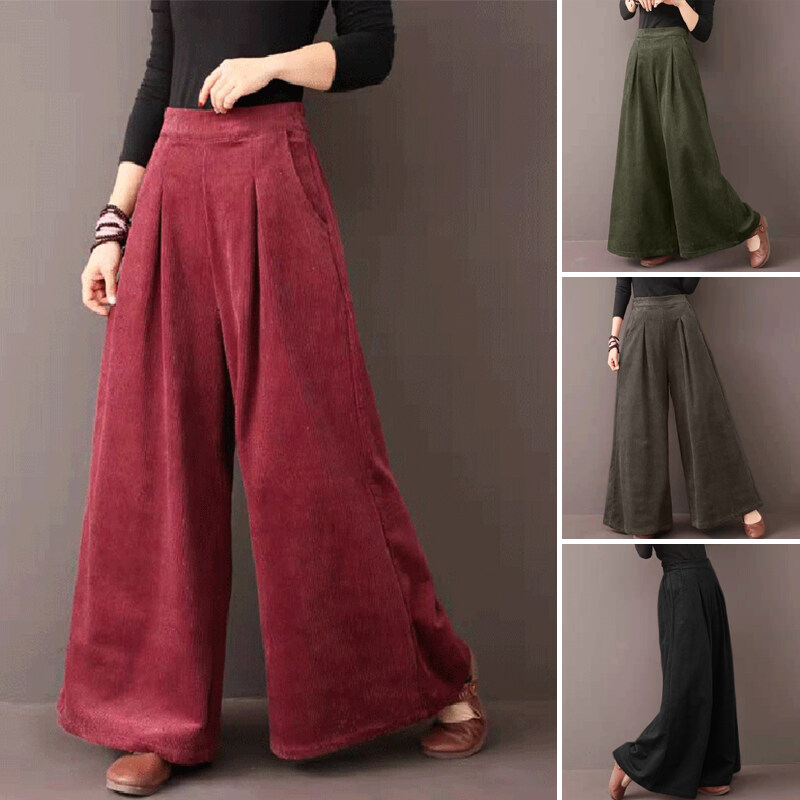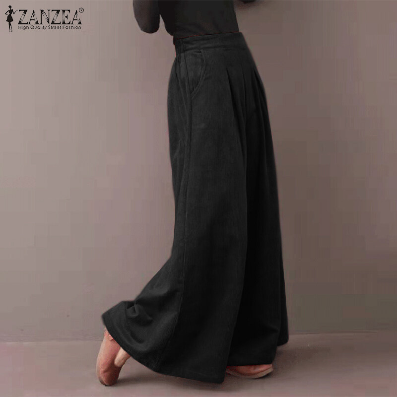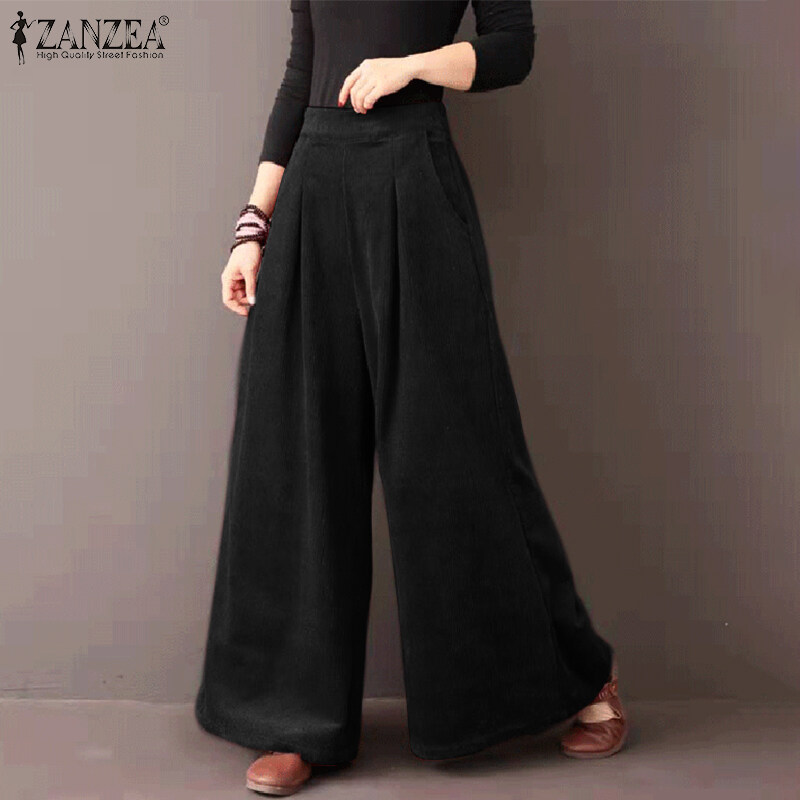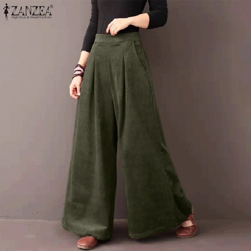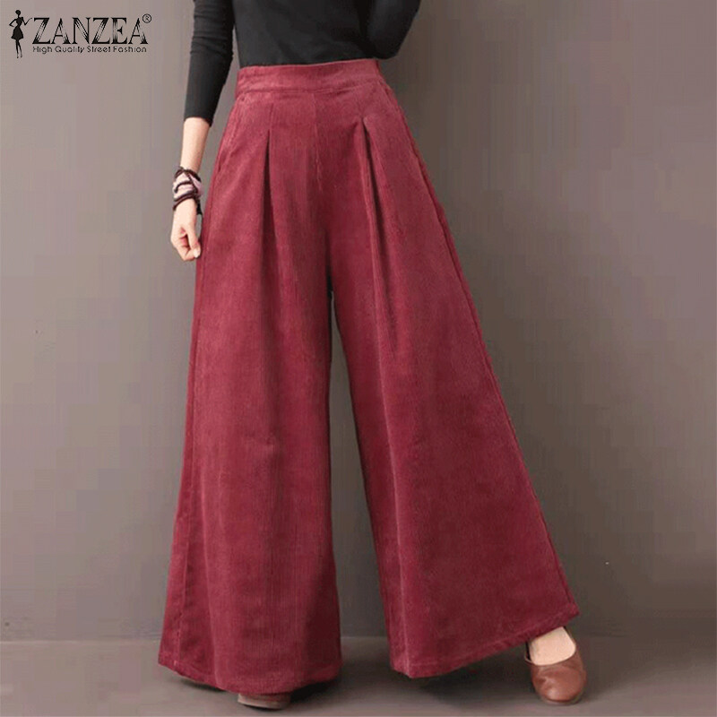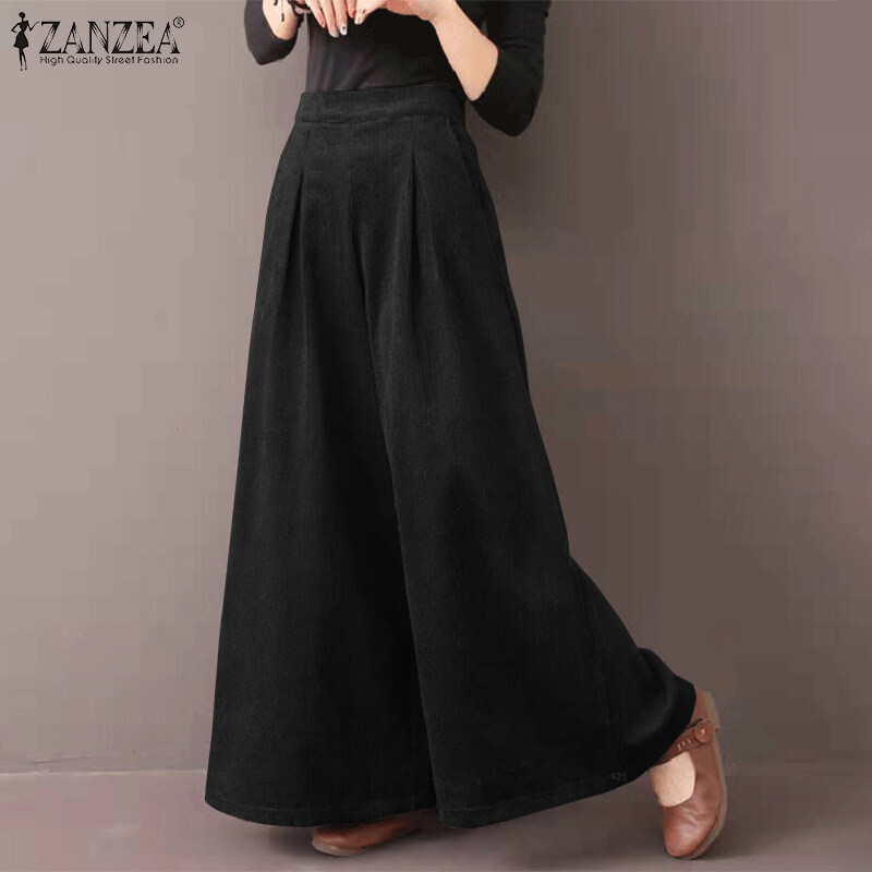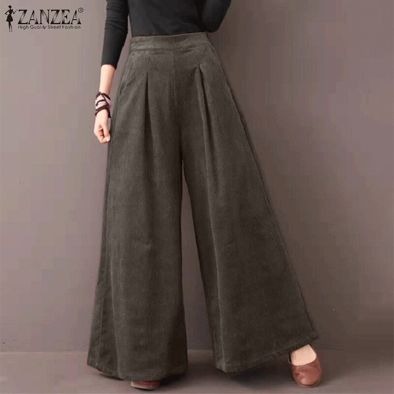 Zanzea女子耀斑宽腿裤休闲灯芯绒Culottes高腰部长裤