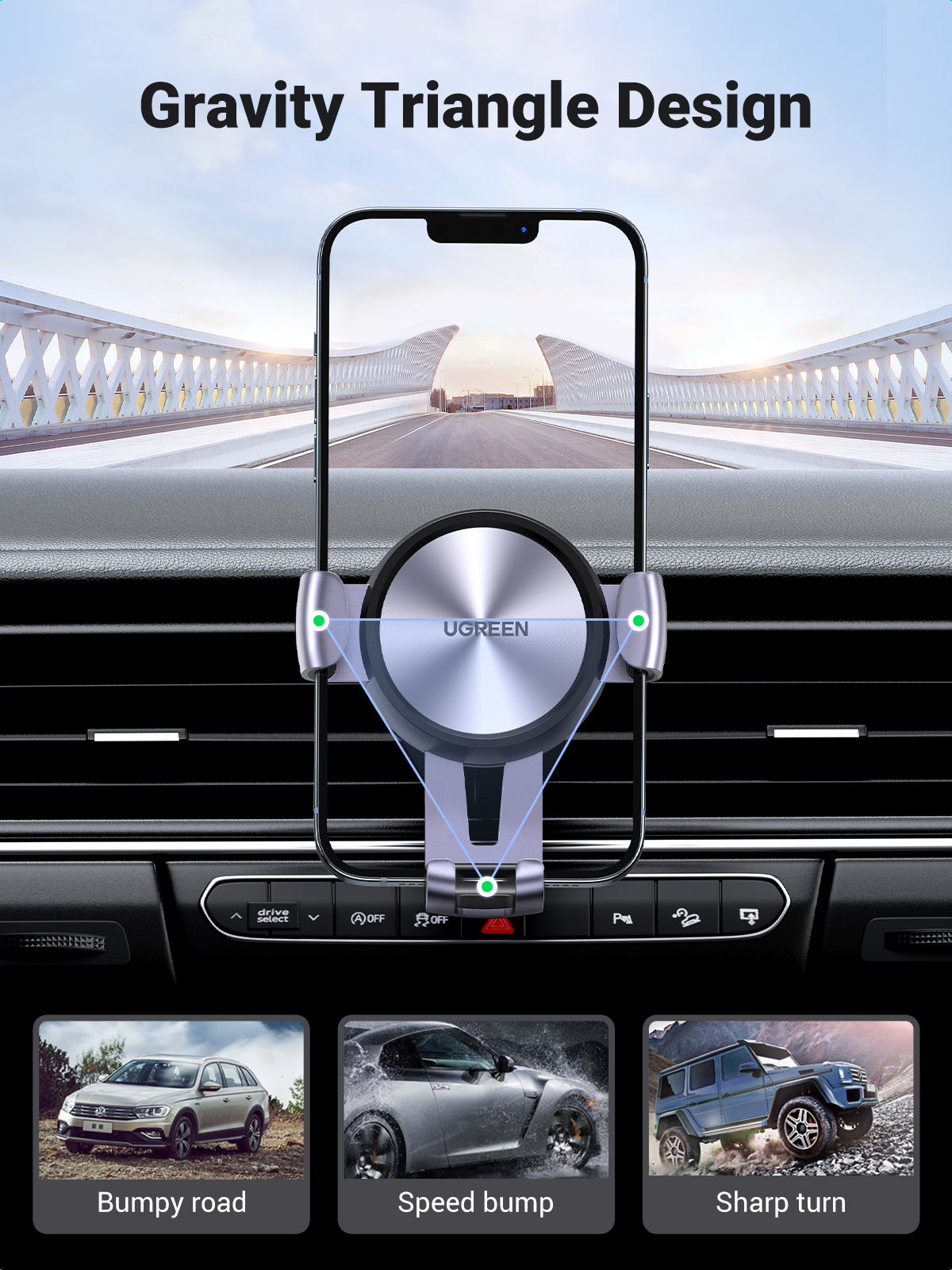 UGREEN原始重力反应汽车支架电话架通用气通风板夹夹iPhone 7 8 Plus X Samsung Xiaomi GPS-INTL