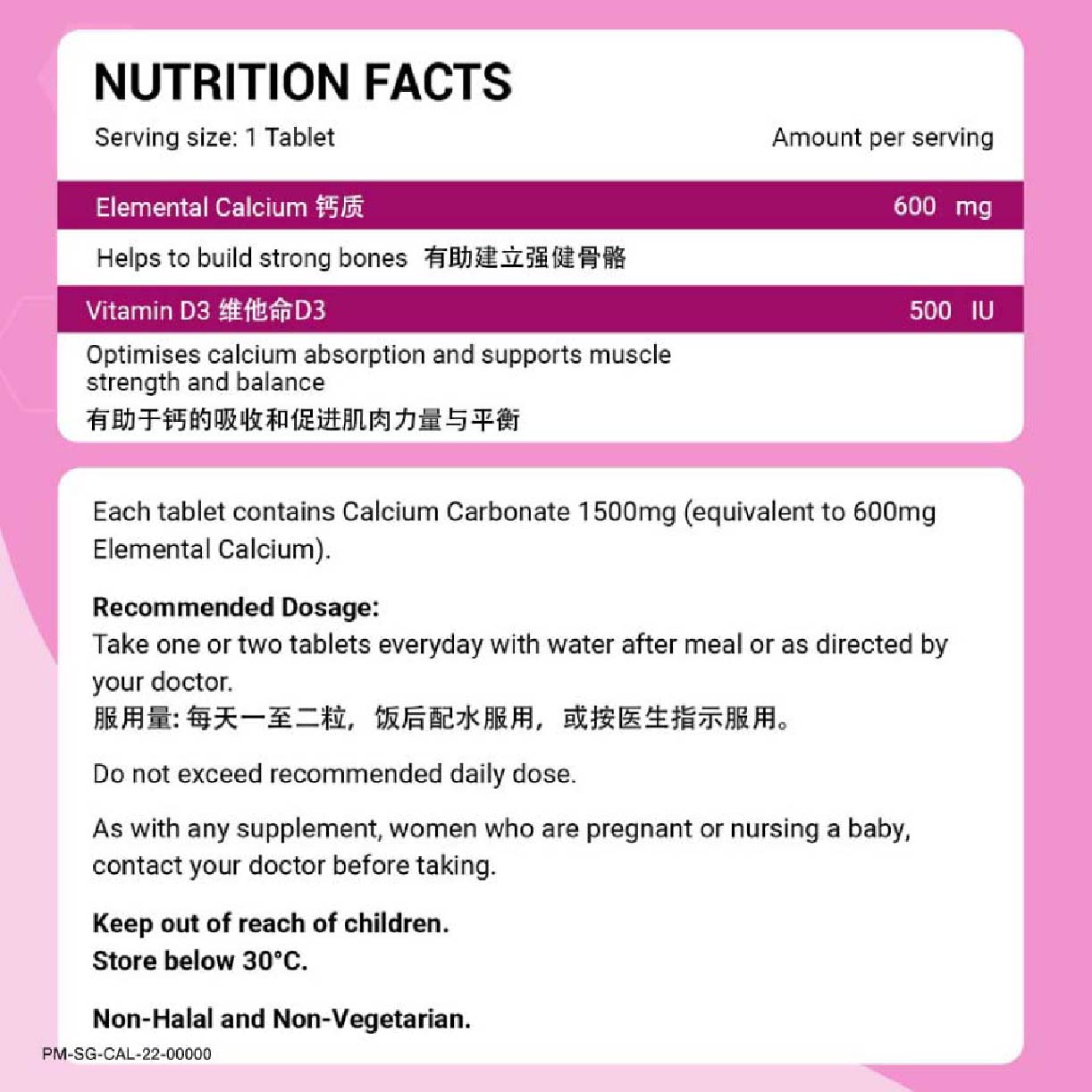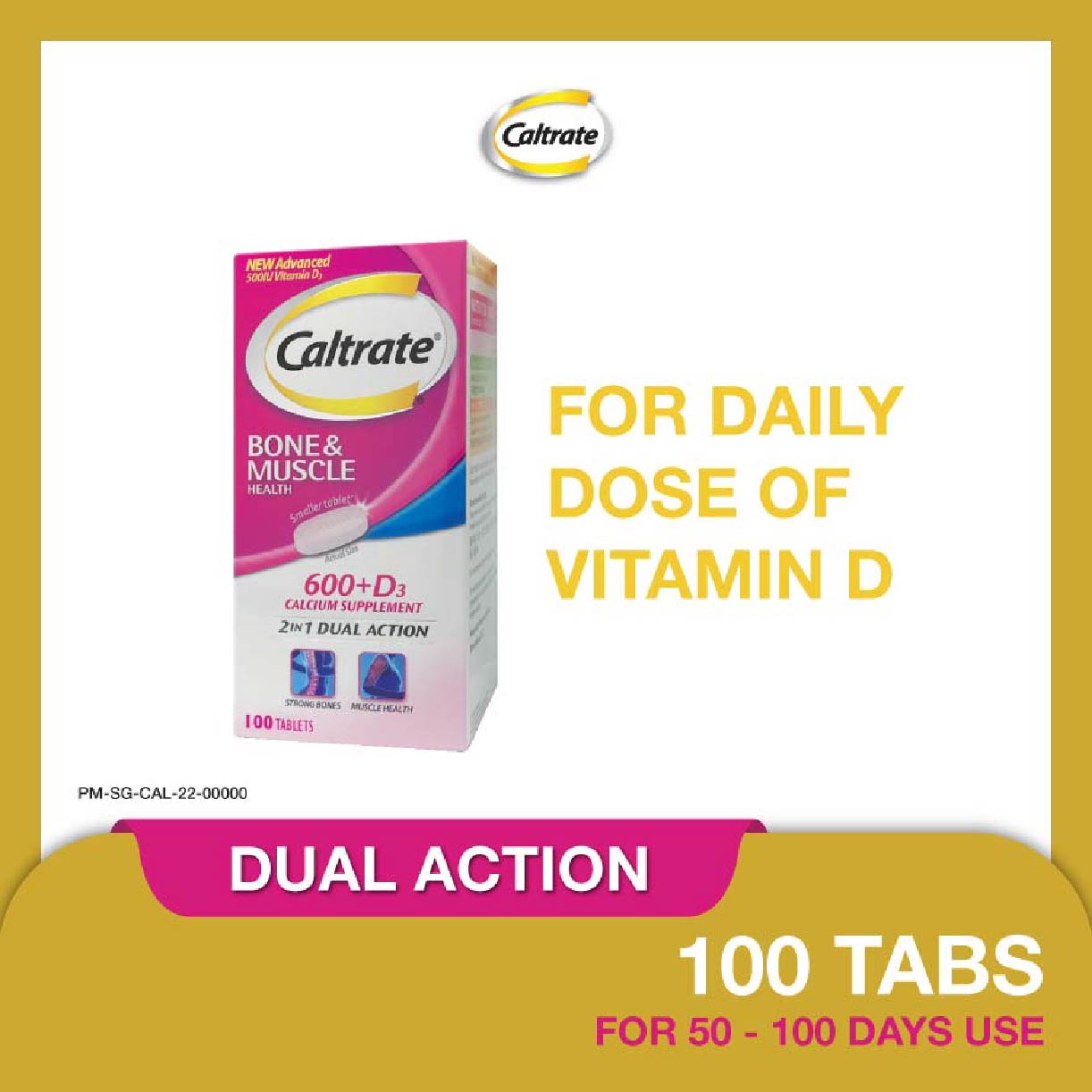 Caltrate® Bone & Muscle Health contains 600mg of Elemental Calcium for bone health and 400IU Vitamin D2 to help muscle health.