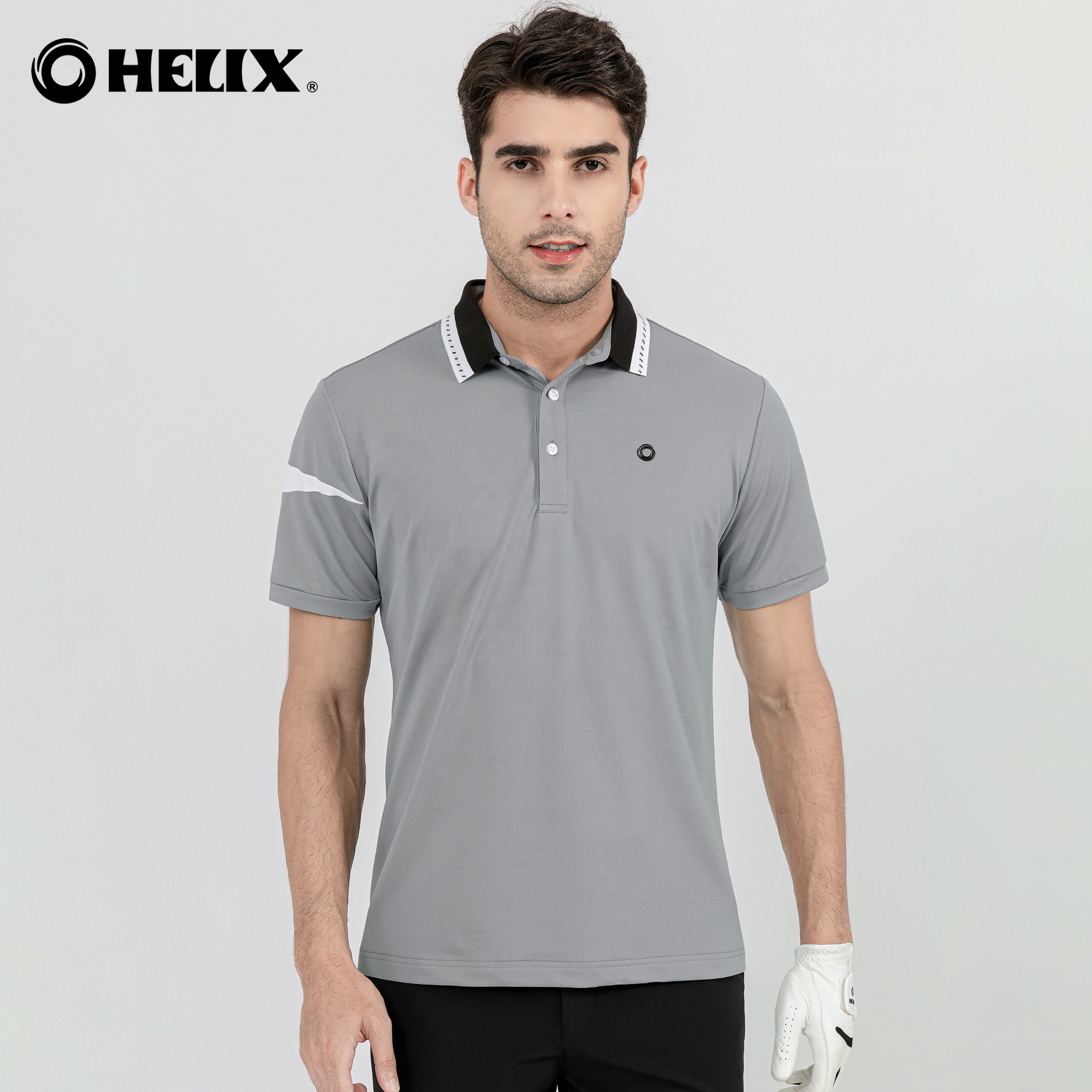 螺旋男士polo衬衫快速干燥性能短袖高尔夫球球球球场是灰色/粉红色的