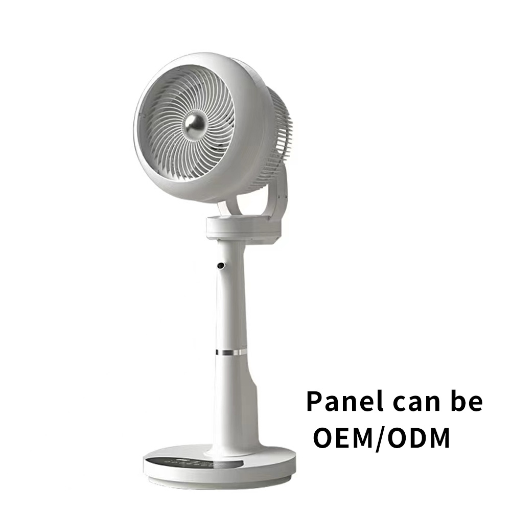 Air circulation fan, DC motor, 100-240V wide voltage, the plug supports customization and OEM / ODM Wide angle shaking head, turbine hood, air supply distance up to about 15m, touch screen + remote control operation, and ultrasonic atomization function. You can add water and aromatherapy. In summer, you can make the air in the whole room circulate without drying. It is equivalent to a humidifier plus a circulating fan Own appearance patent and practical patent Source factory, looking forward to your cooperation