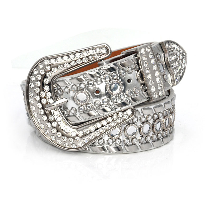Manufacture New Designer Custom Rhinestone Diamond Stone Red PU Leather Crystal DNA Belt Multi Color Choice for Men and Women