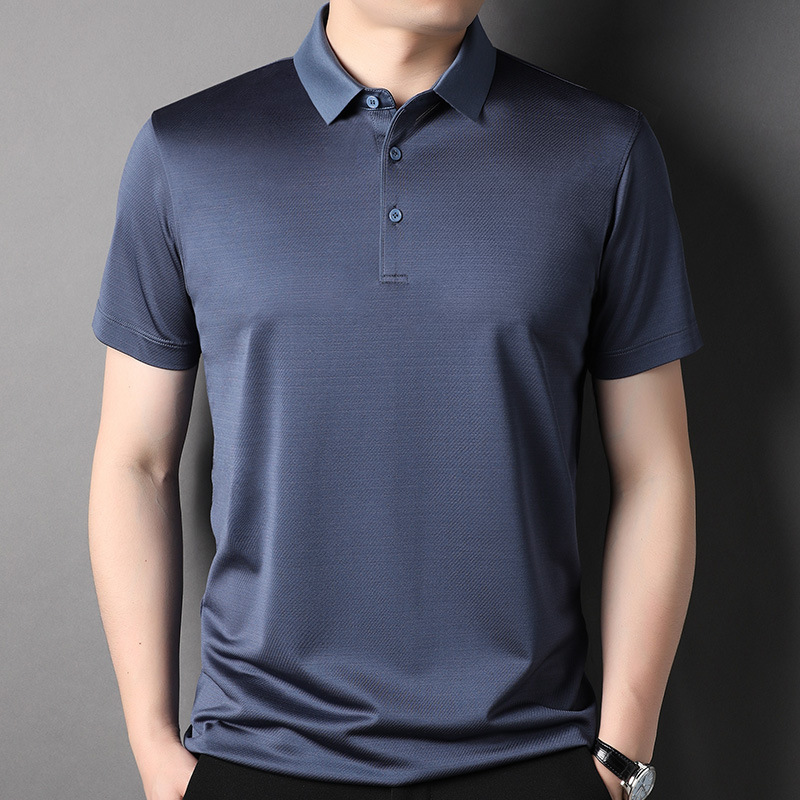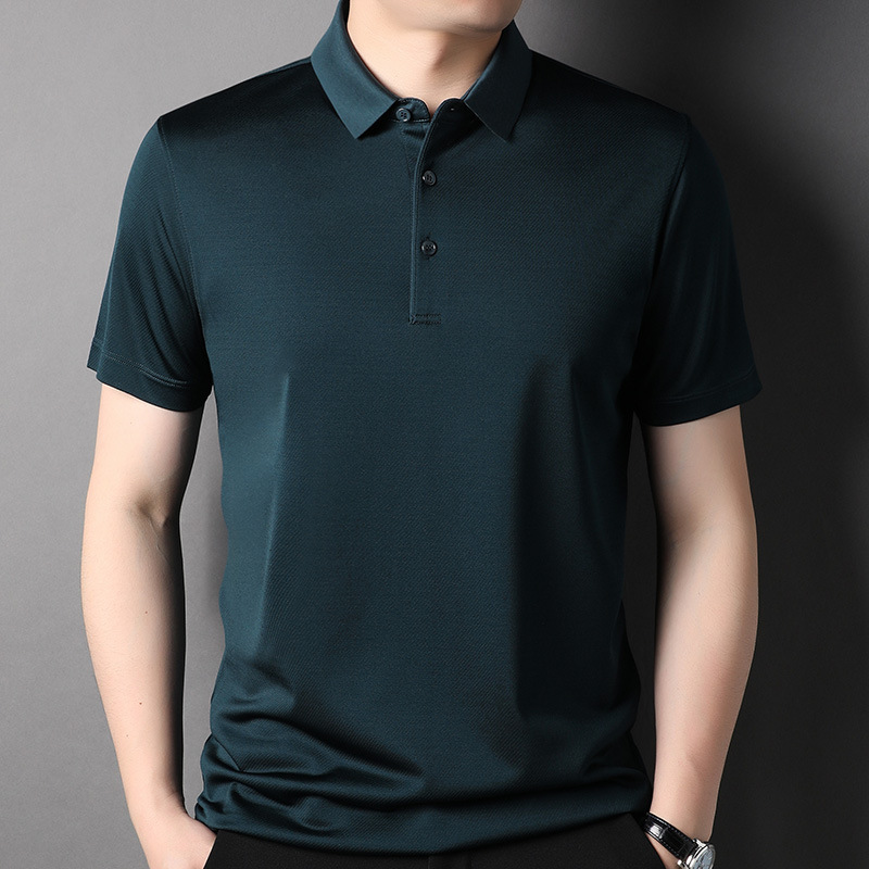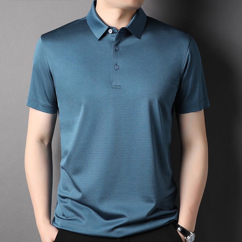 工厂批发男士豪华天然材料固体真丝polo衬衫5颜色