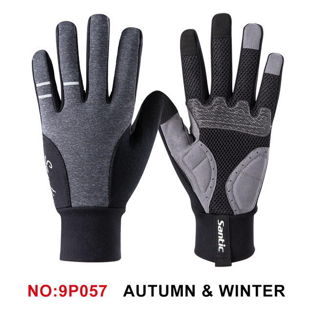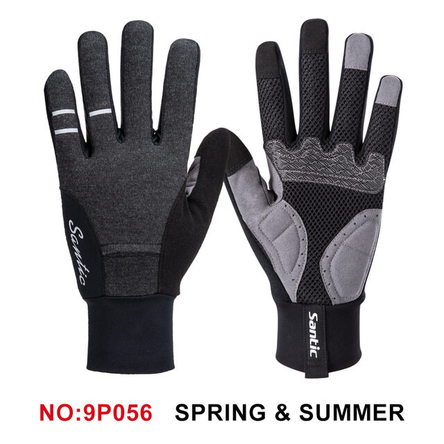 Santic Men带触摸功能的全手指骑自行车手套防震防风型自行车手套9P057/9P056