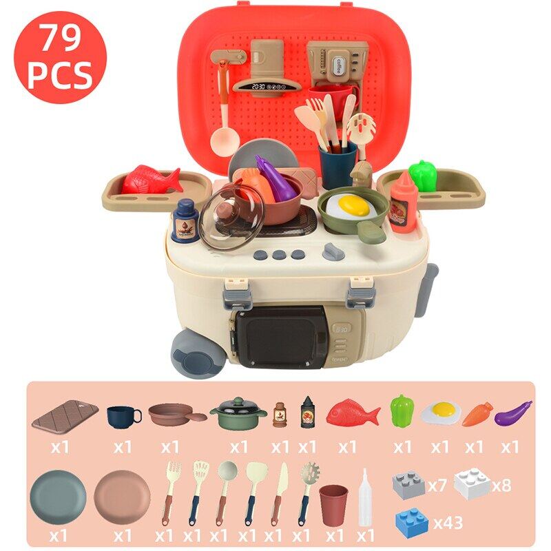 海格厨房玩具烹饪玩具79pcs儿童厨房玩具婴儿家庭喷雾厨房厨房储物厨房玩具小厨房玩具套装仿真喷雾玩具水槽流水和其他厨房ACC