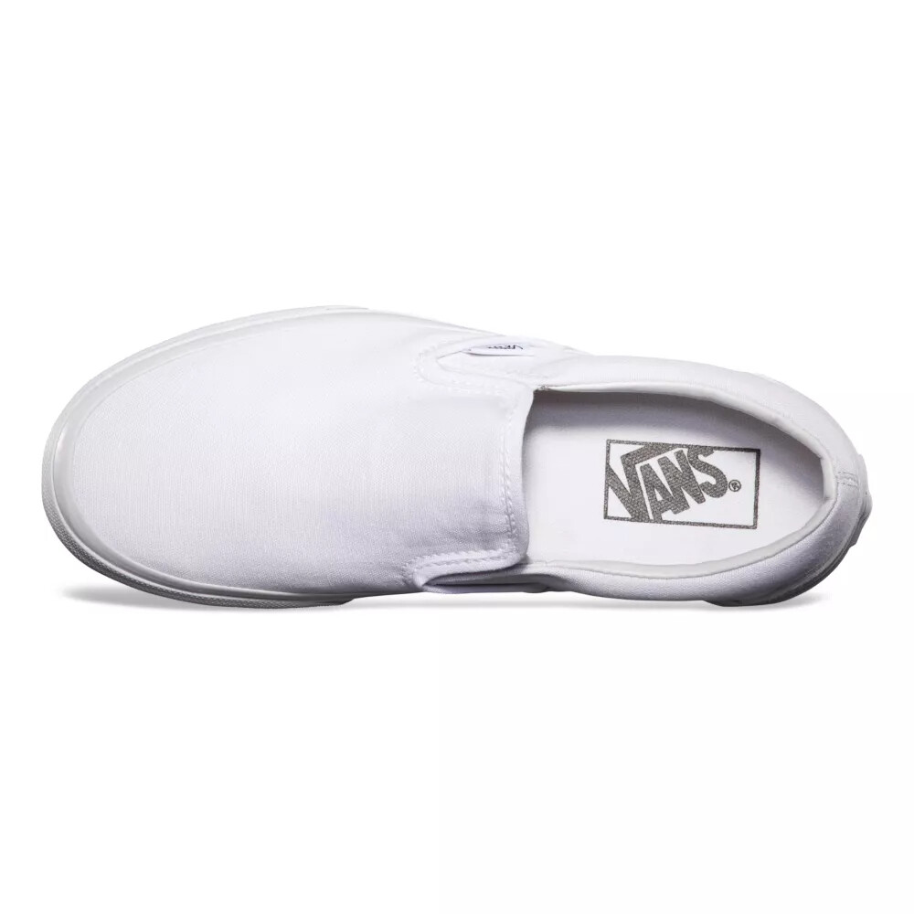 The Classic Slip-On features sturdy low profile slip-on canvas uppers, padded collars, elastic side accents, and signature rubber waffle outsoles.