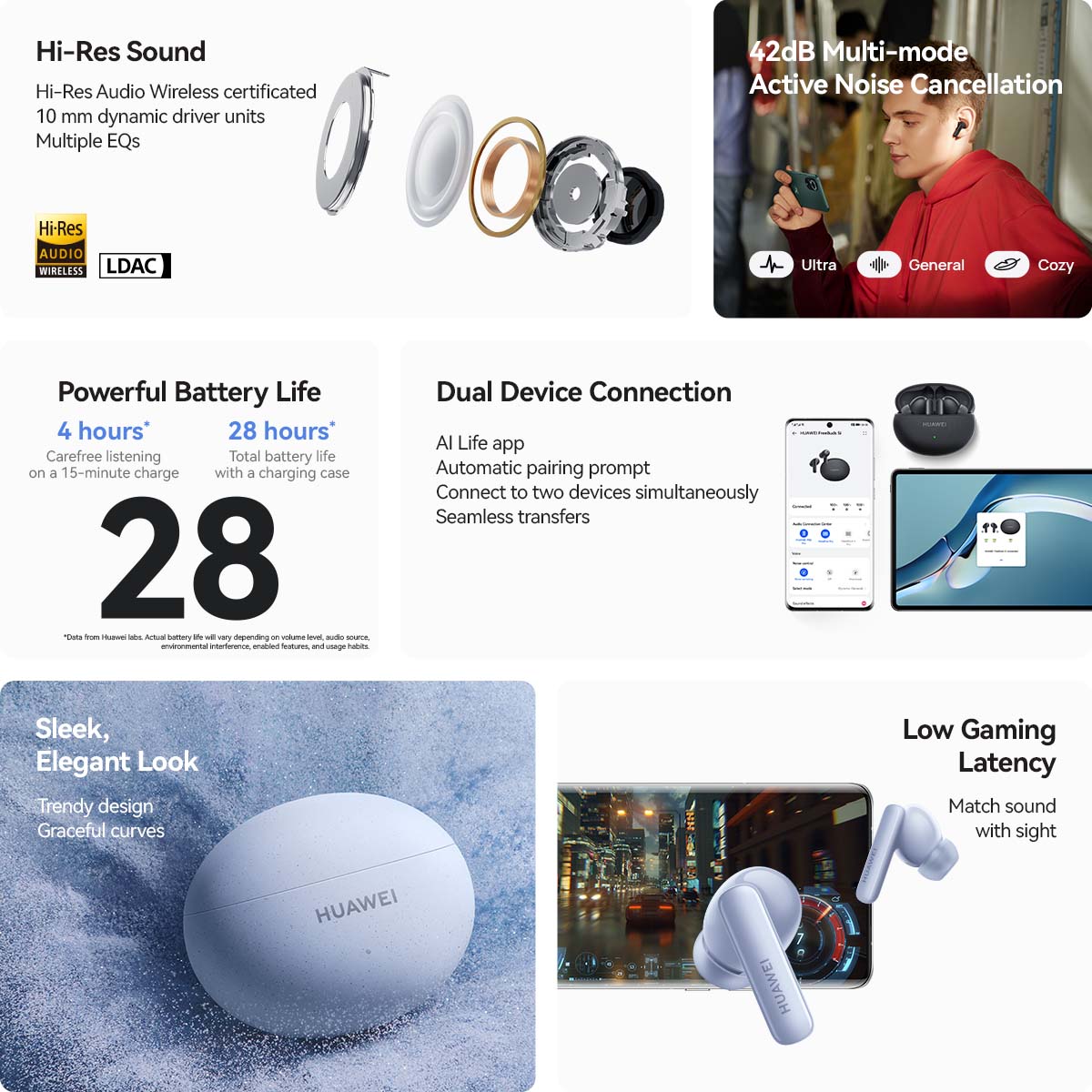 华为免费大小5i无线耳机| TWS蓝牙耳塞|高分辨率声音| 42DB多模式主动噪声消除| 28小时电池寿命