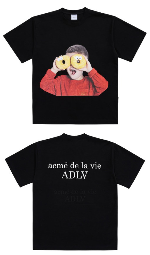 [Acme de la vie]★与Hiddentag超大号超大号★ADLV婴儿脸短袖T恤甜甜圈1件Acmedelavie休闲男士T恤女士T恤女士T恤T恤T恤上衣100%在韩国制造的正宗棉花