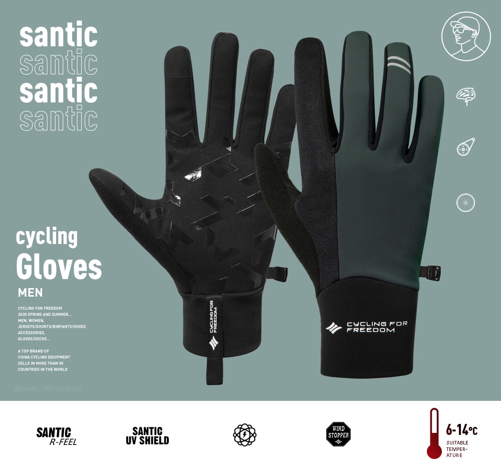 Santic Cycling Gloves Winter Men妇女用触摸功能全手指热自行车自行车手套