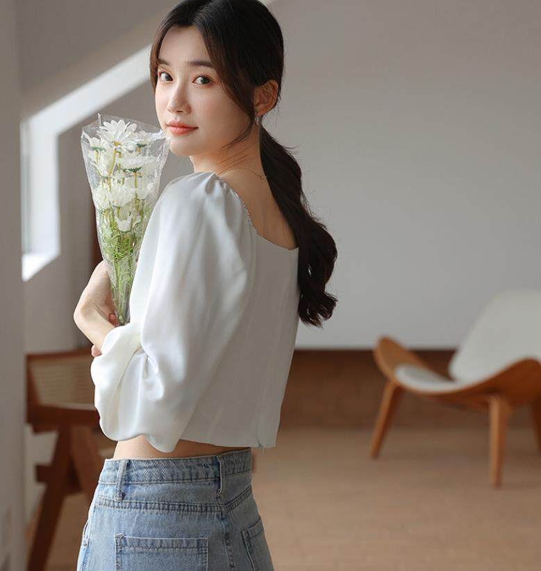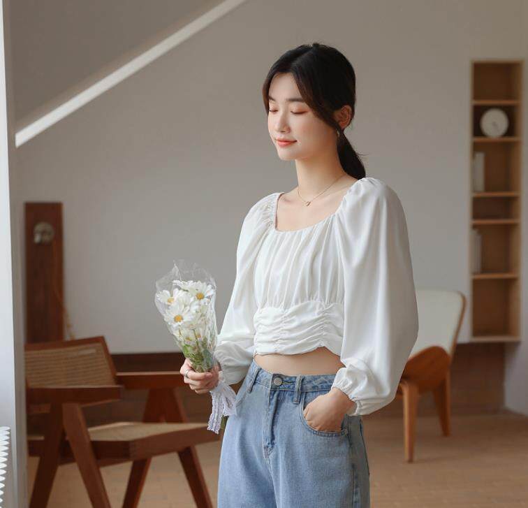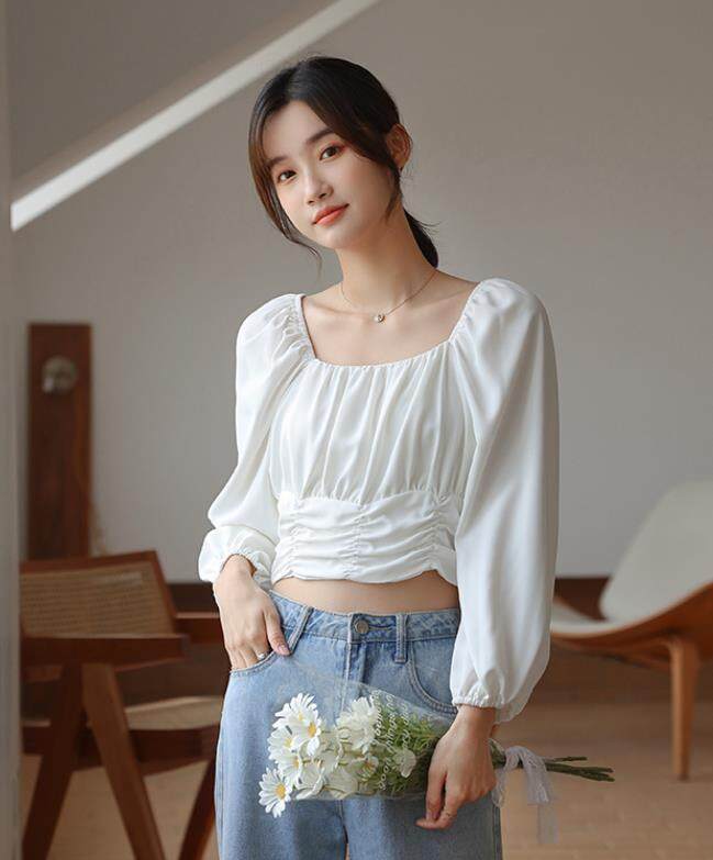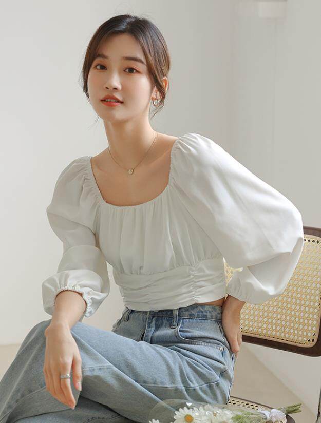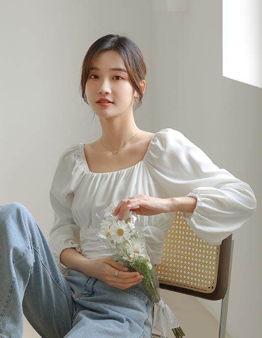 春季灯笼纯色的新长袖服装Slim Shirt Topwomen's Clothing HQT102071