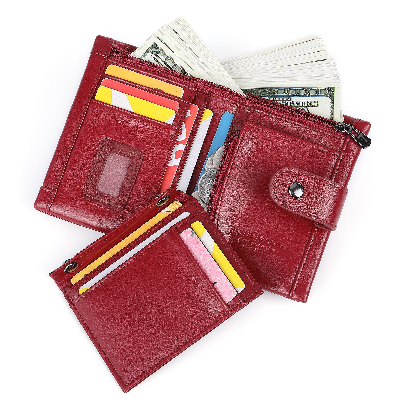 皇家袋装2021新的时尚短钱包钱包,妇女真正的牛皮皮革优雅的手拿包多卡袋钥匙袋