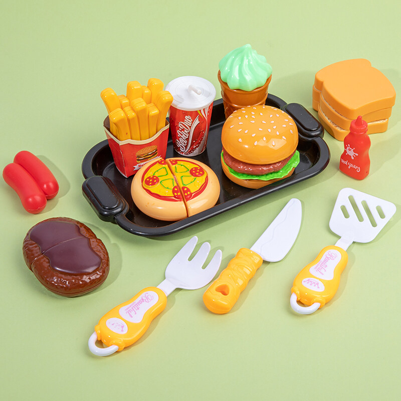 9pcs 17pcs儿童厨房食品玩具套装甜点冰淇淋套装播放房屋模拟玩具汉堡炸薯条热狗套装现金寄存器安全和儿童无毒的乐趣游戏