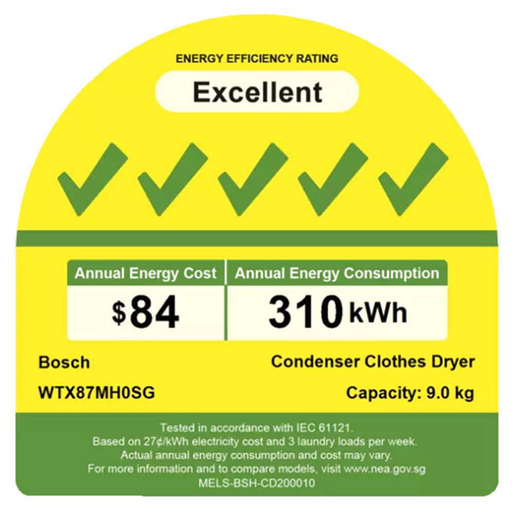 (笨重)Bosch WTX87MH0SG意甲| 8热泵滚筒式干衣机(9kg)