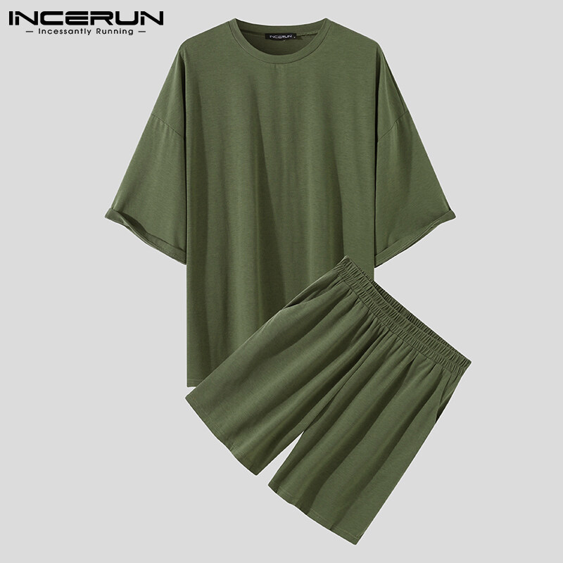 Incerun Mens Shorty睡衣套装睡衣日本宽松的配件短裤睡衣西装(韩国风格)