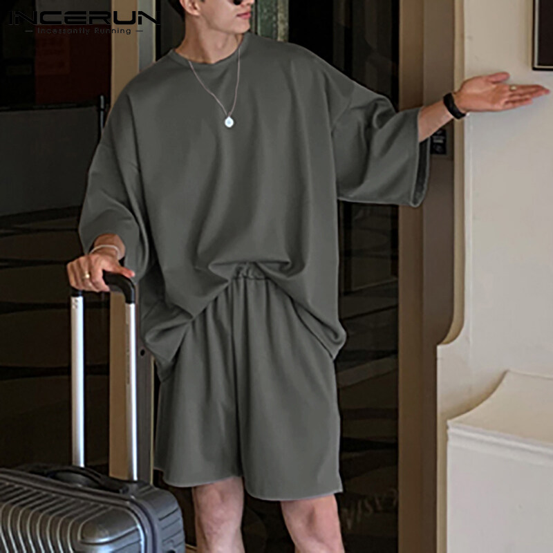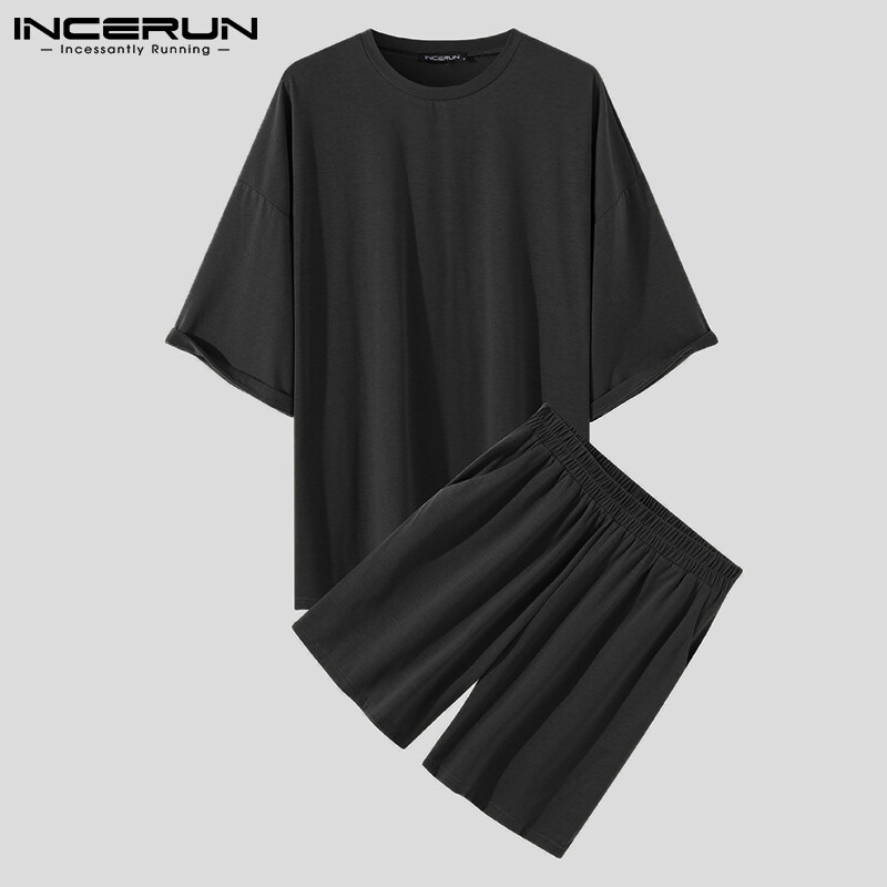 Risinghope韩国Incerun 2pcs男士短袖T恤衫短袖套件