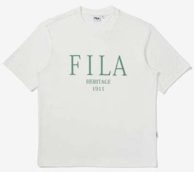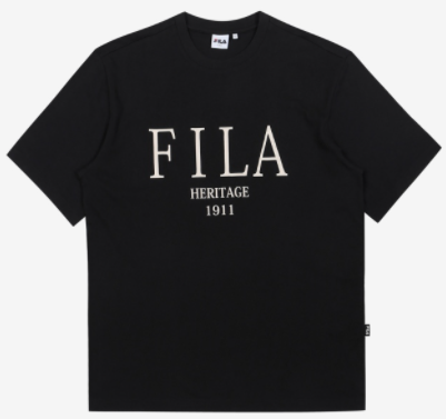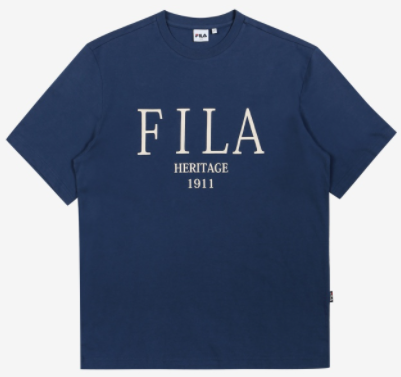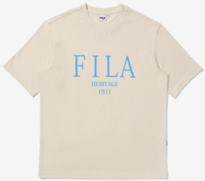 [FILA KOREA]遗产衬线徽标松散的合身短袖T恤休闲男士女士T恤夫妇顶级棉花街风格的韩国时尚