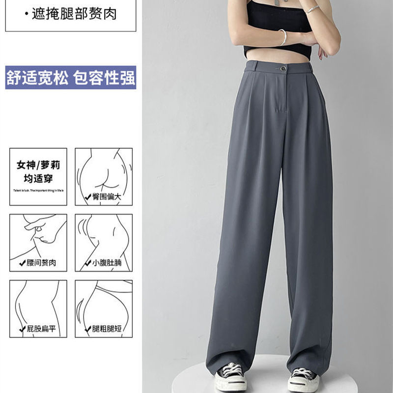 假日女士裤子夏季夏季直腿裤冰丝丝薄宽阔的高腰裤子免费送货HQP0054
