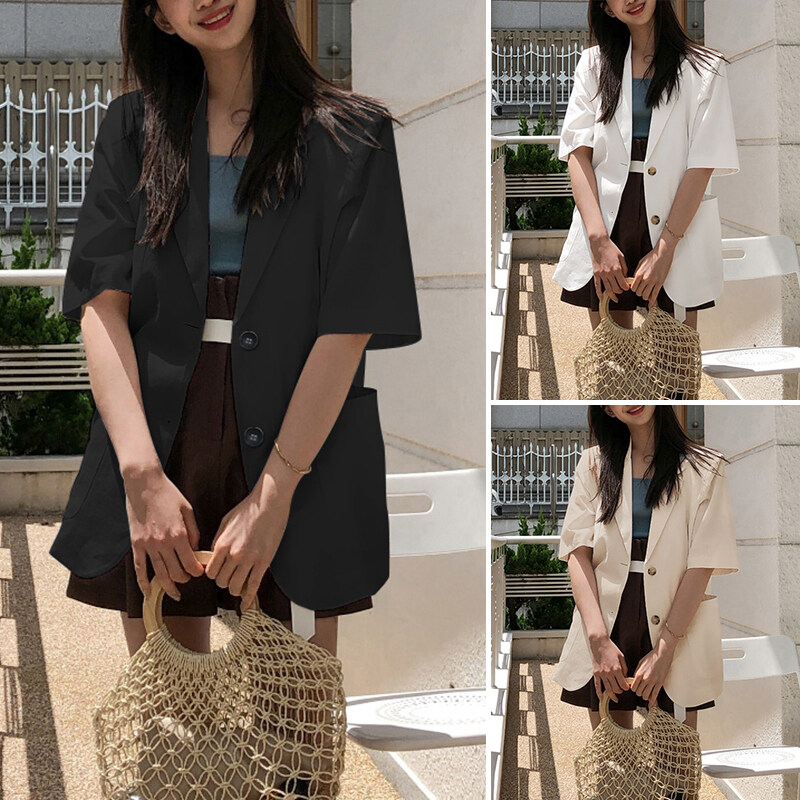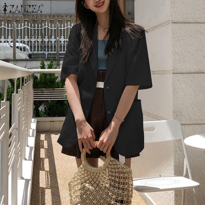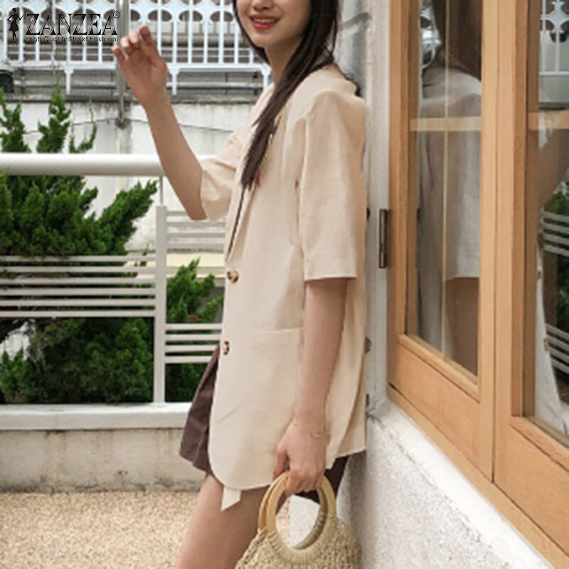 Zanzea韩国风格的女性夏季固体外套外套外套半袖纽扣戴西装
