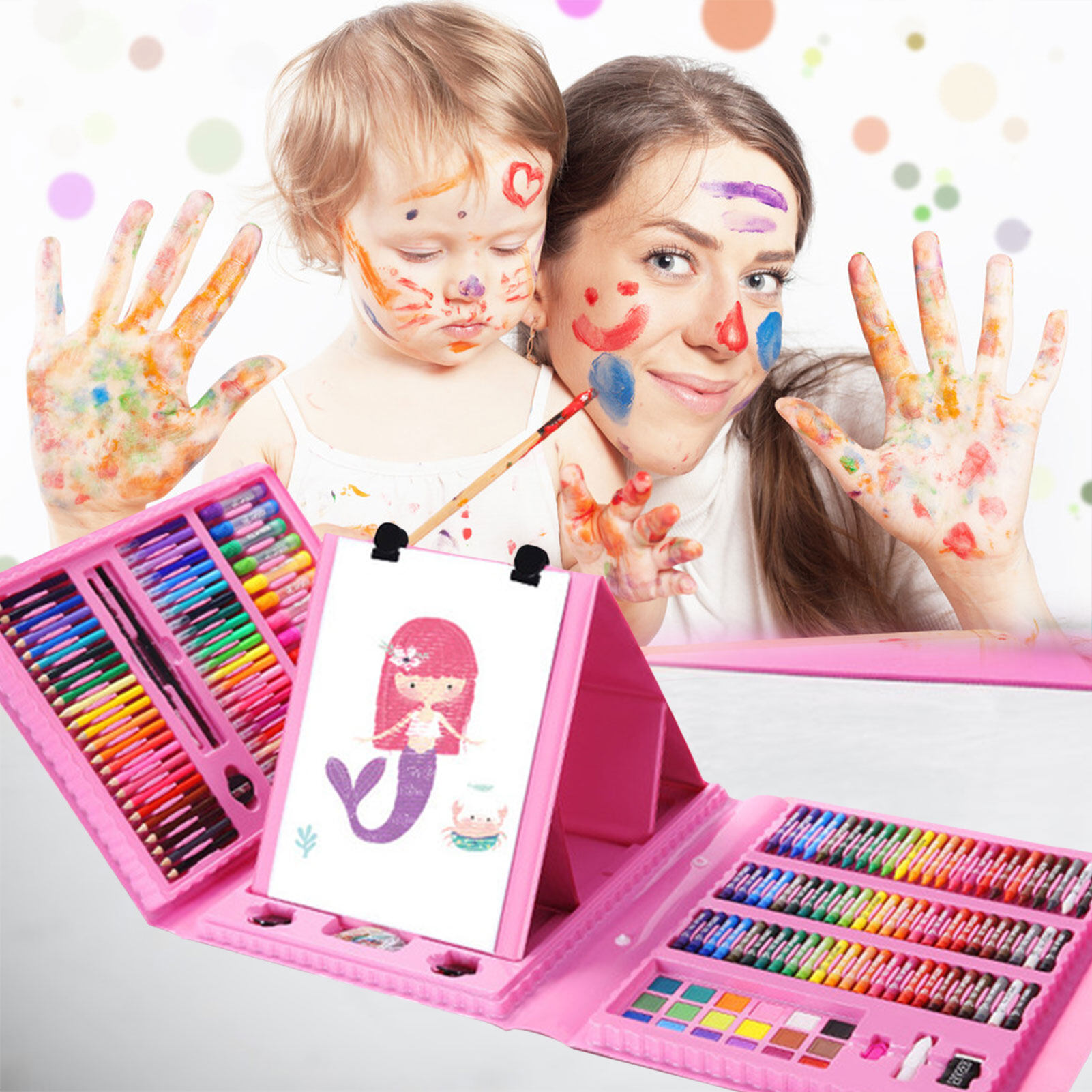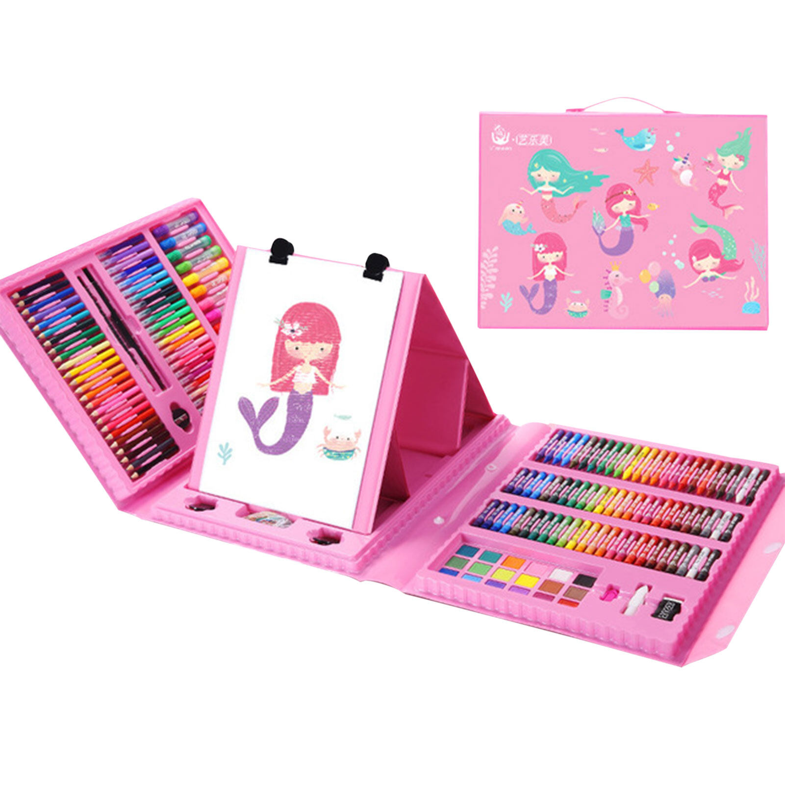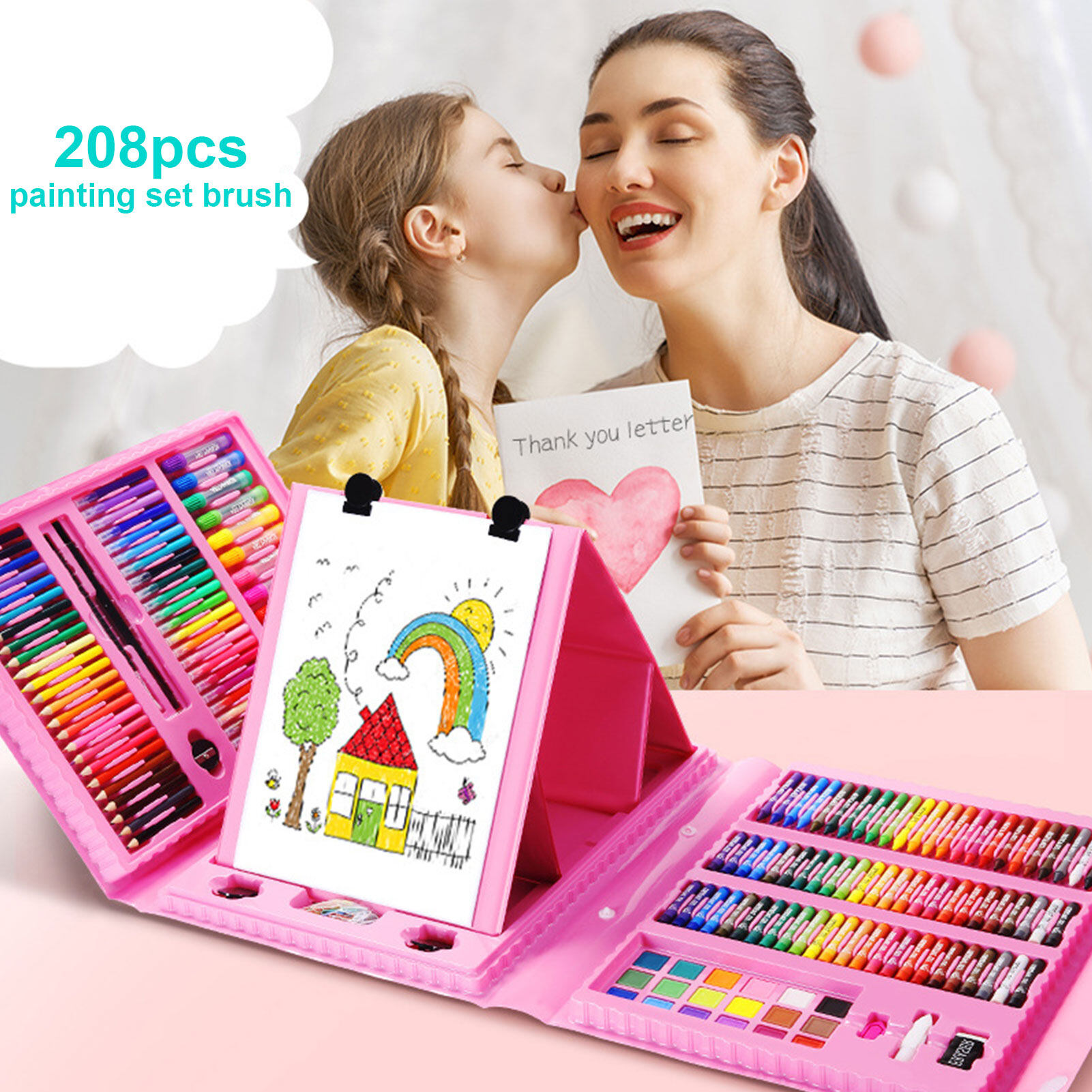 208个PCS儿童绘画着色套装套装彩色铅笔蜡笔水彩笔带有绘图板绘图套装玩具学校用品孩子礼物