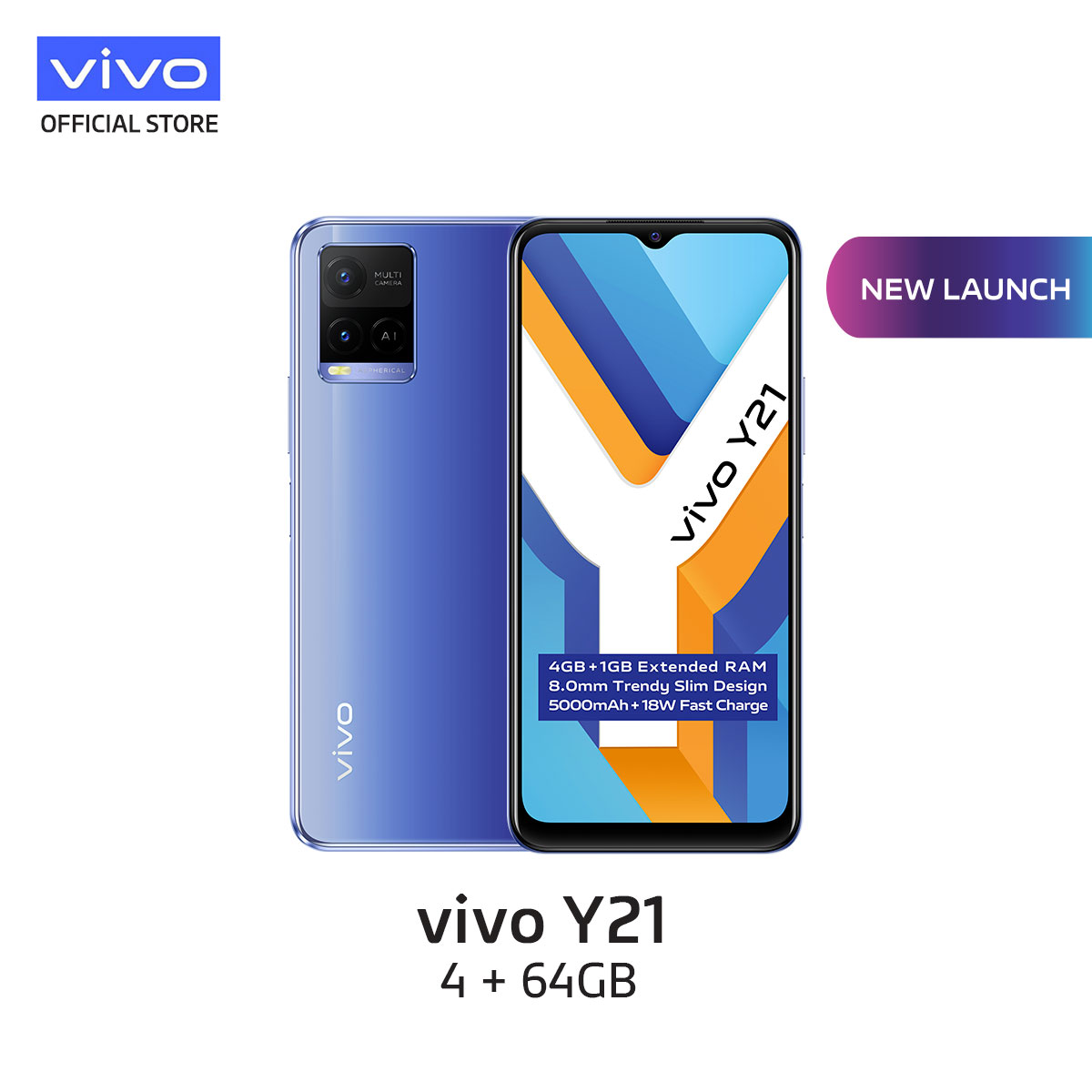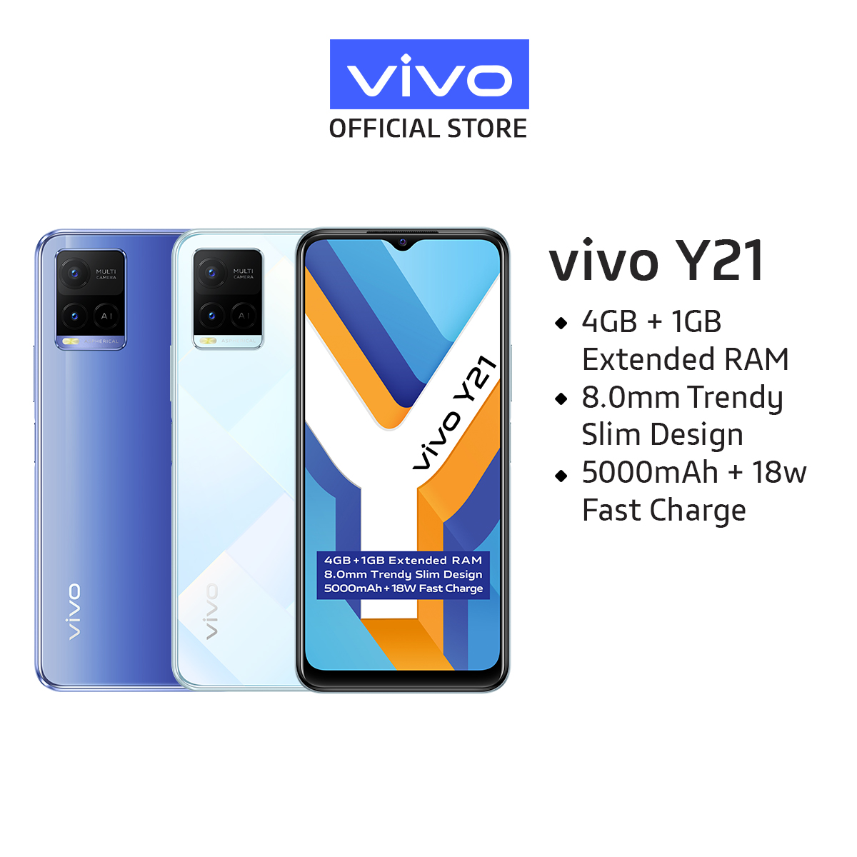 Vivo Y21 [4GB + 1GB/ 64GB]/ 5000mAh + 18W快速充电/ AI后置摄像头系统/ 8.0mm时尚苗条设计【2年保修】