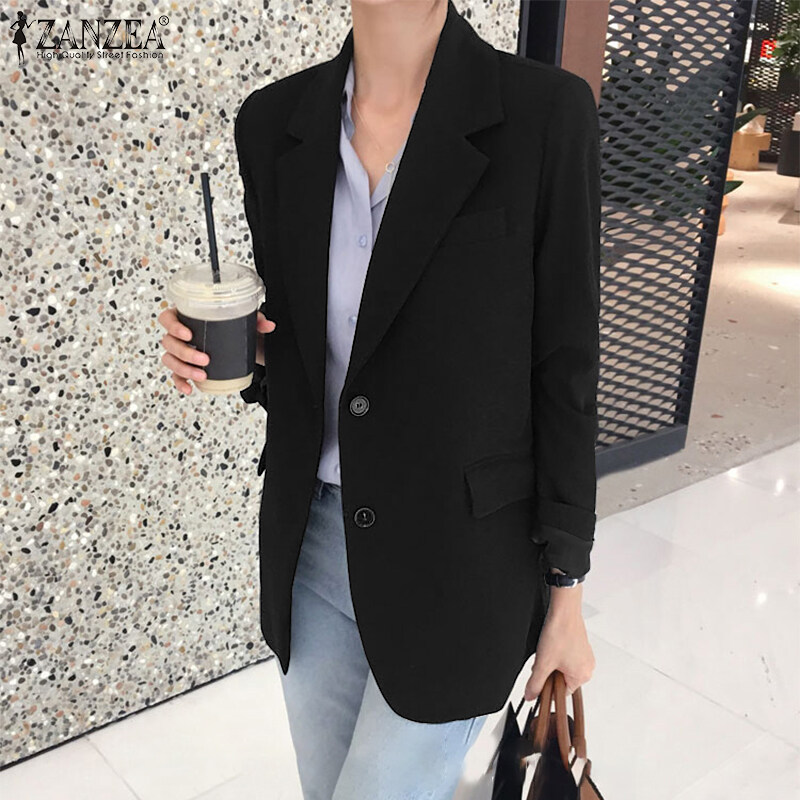 Zanzea韩国风格的女性休闲长袖西装外套扣上外套