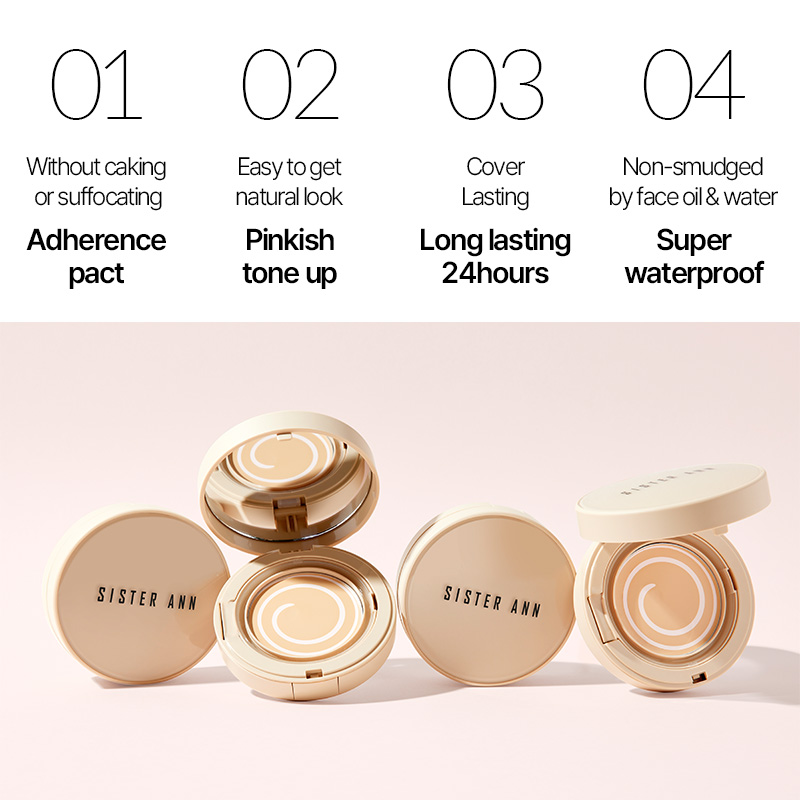 [SisterAnn官方]粉红色果冻封面条约(4种颜色) /半哑光覆盖范围,粉红色的精华,带香脂粉底防水紧凑型耐持久的紫外线保护SPF 50+PA ++++