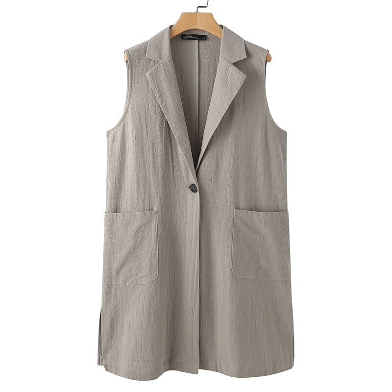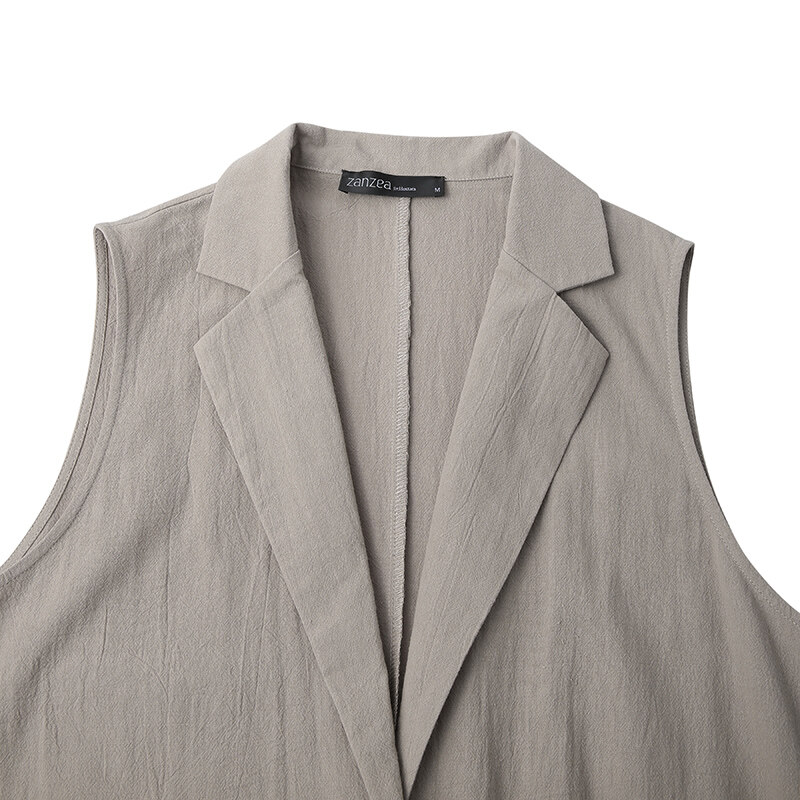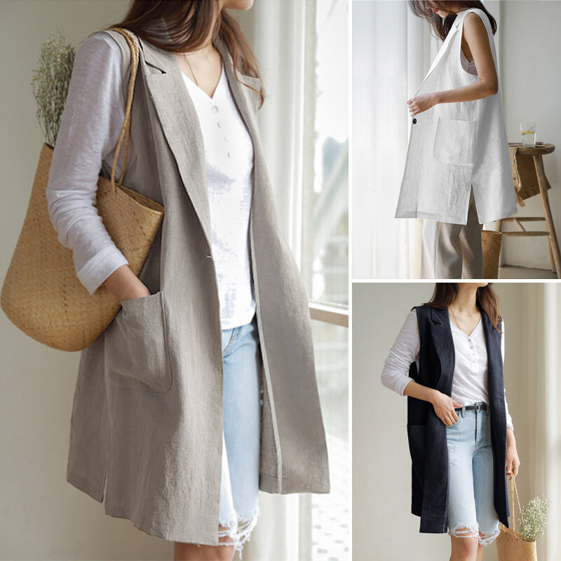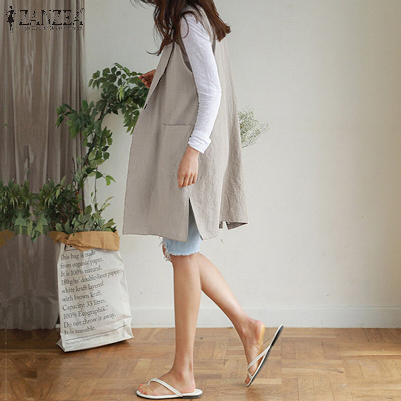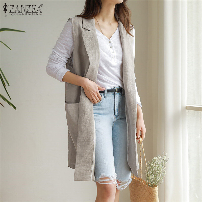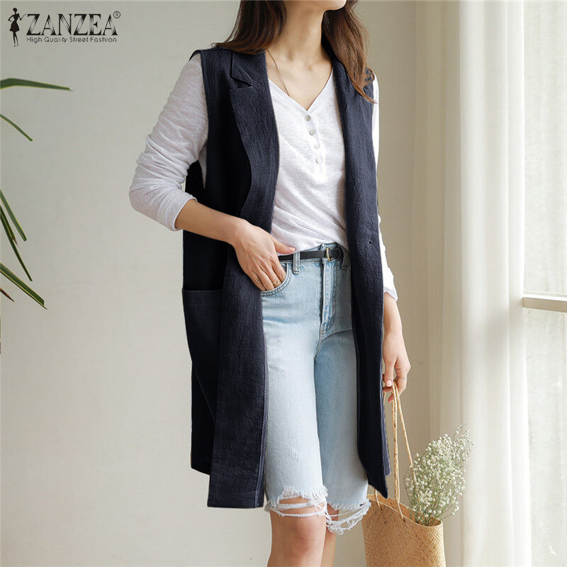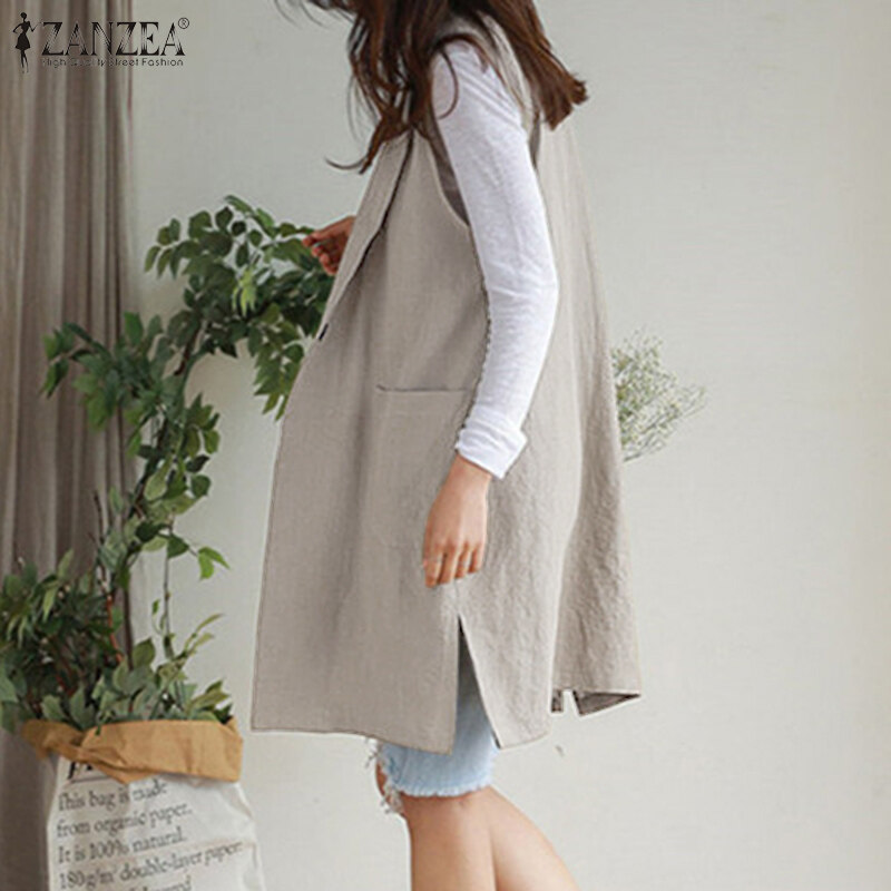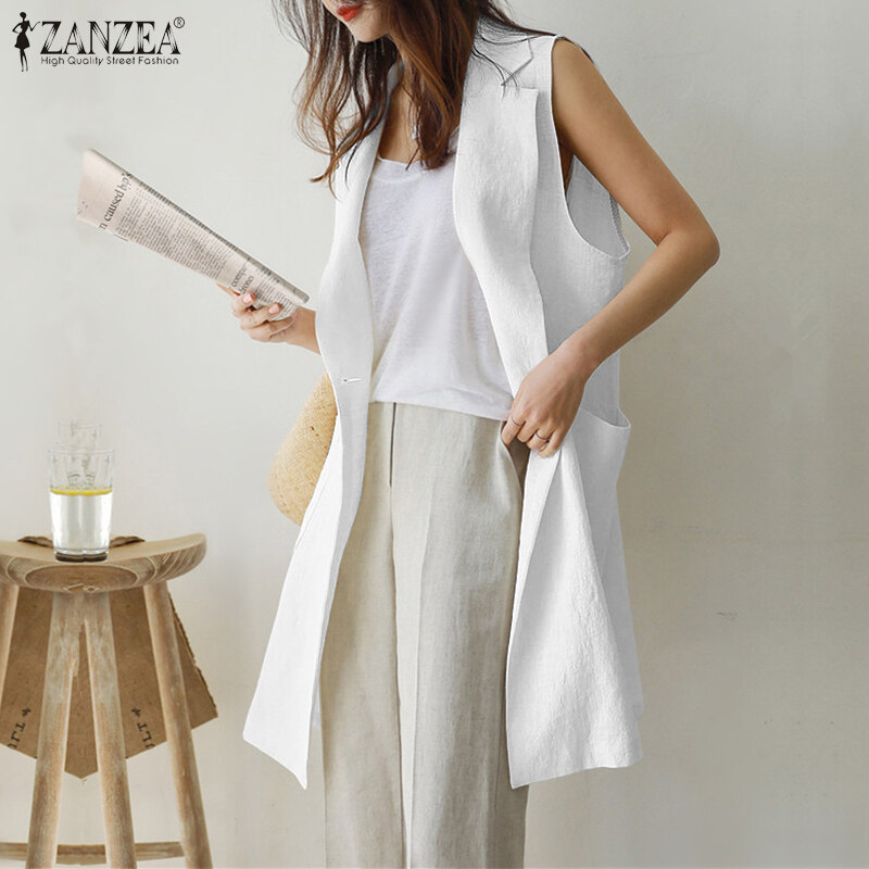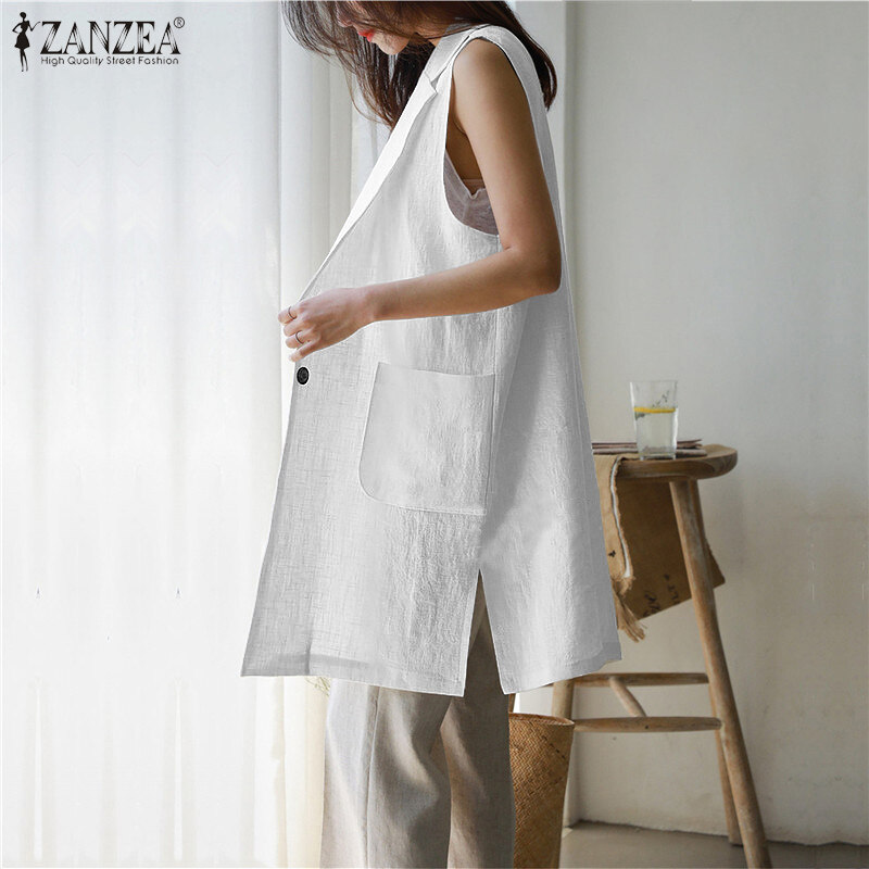 Zanzea女性无袖纯棉西装外套纯基本按钮休闲背心