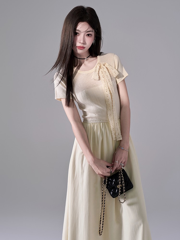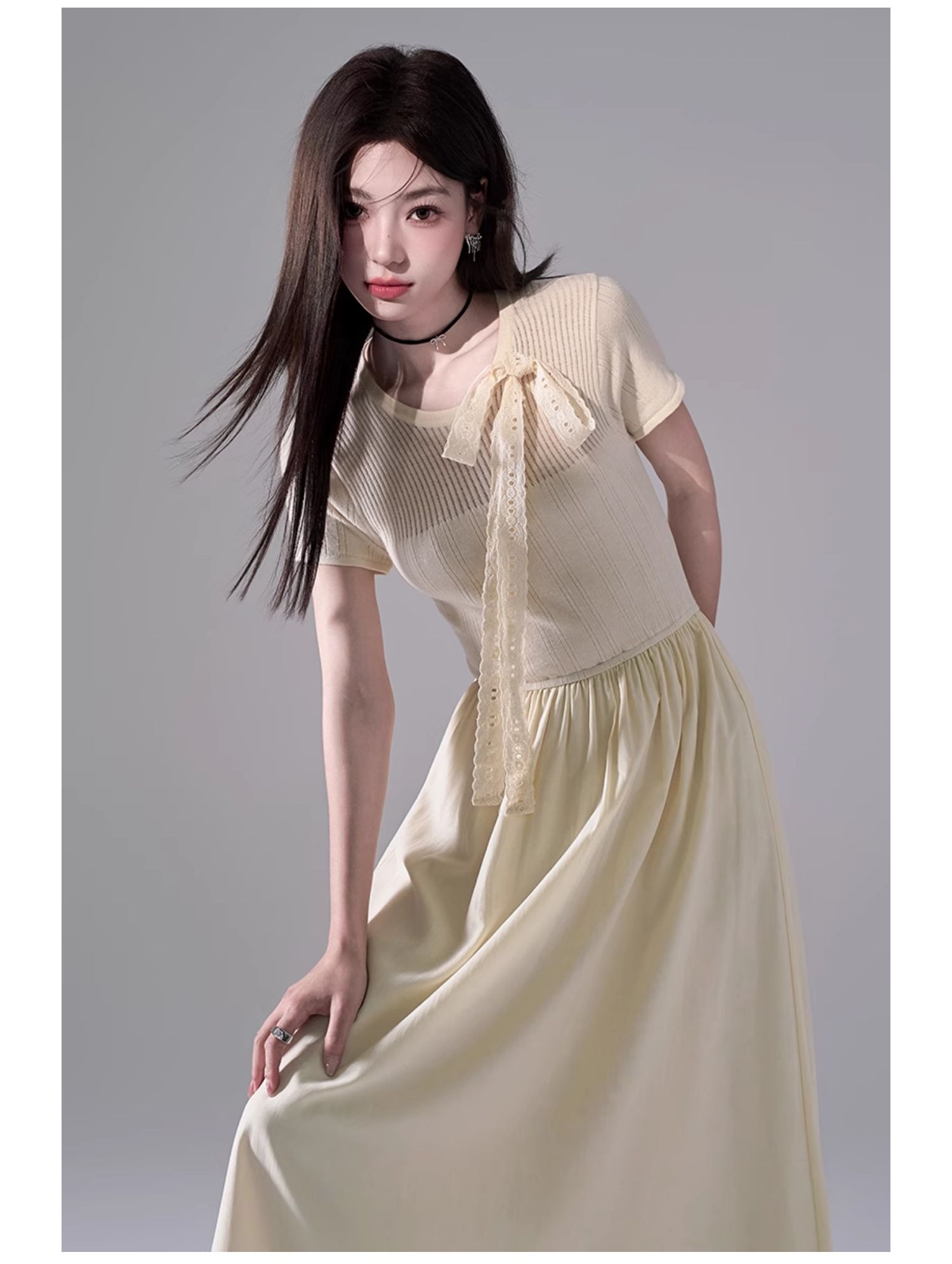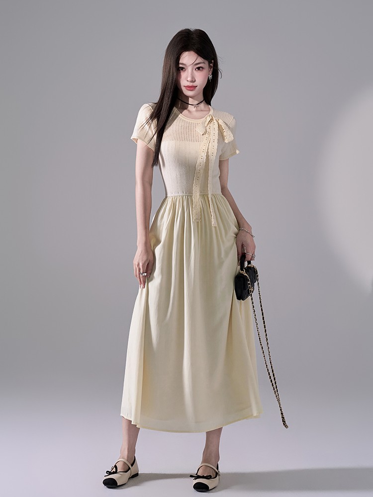 2024新款法式茶歇设计感小众气质修身遮肚显瘦别致短袖连衣裙女夏