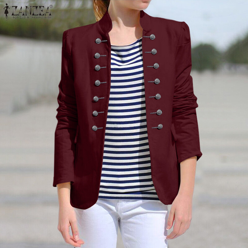 Zanzea妇女长袖外套外套适合双胸纯西装外套外套