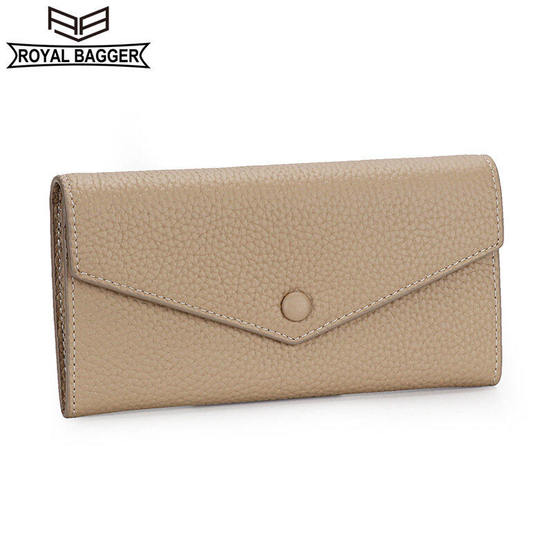 皇家袋装牛皮长钱包,妇女大容量钱包真正的牛皮钱包信封苗条离合器手机钱包