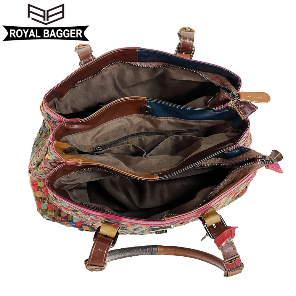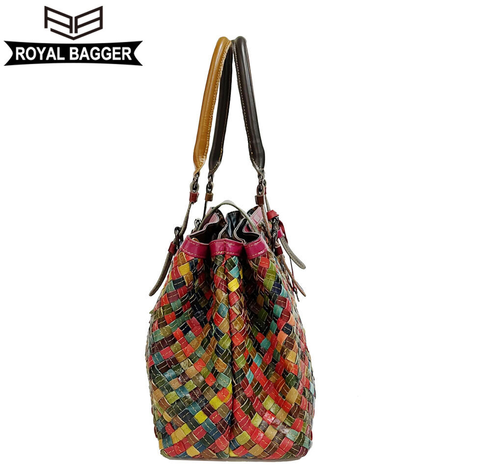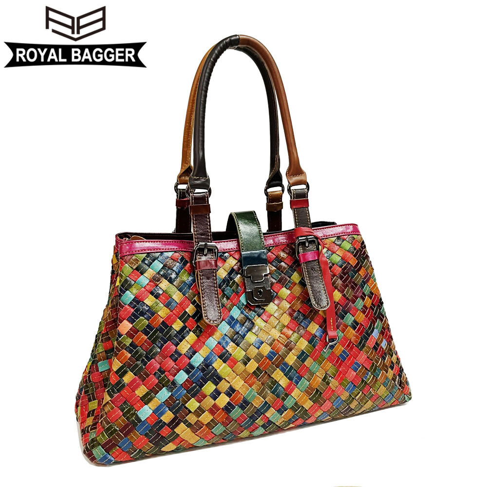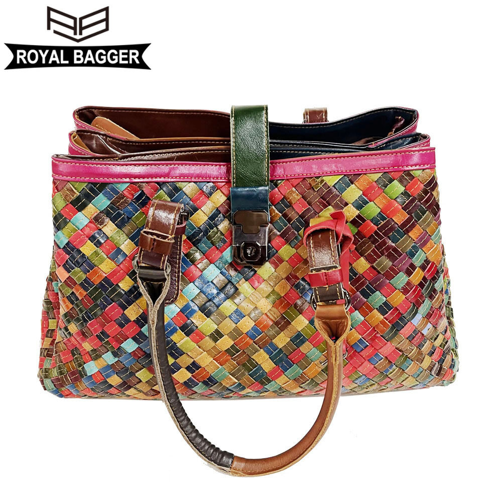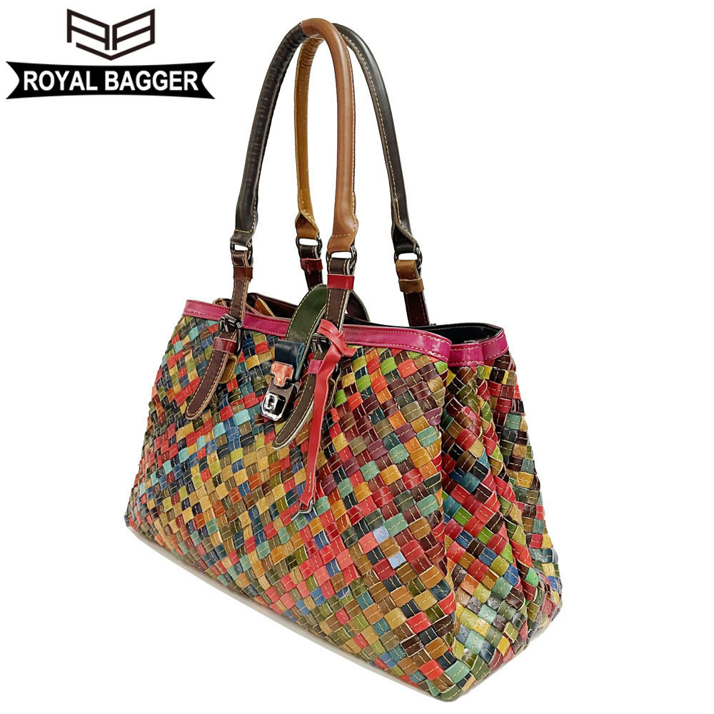 皇家装袋机新女士的顶部手袋真皮休闲女士手提袋大容量编织女孩肩袋
