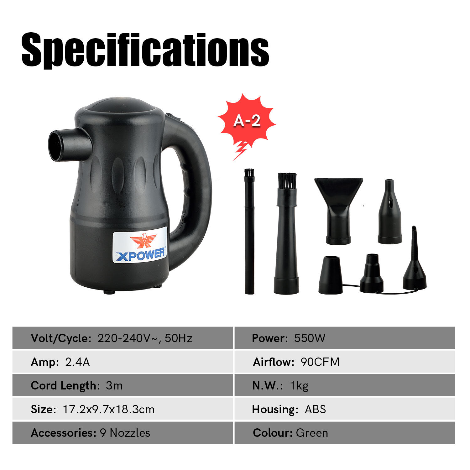 XPOWE A-2PRO计算机清洁剂电动气鼓尘吹气尘埃粉尘收集器气鼓声500W 220V鼓风机空气duster