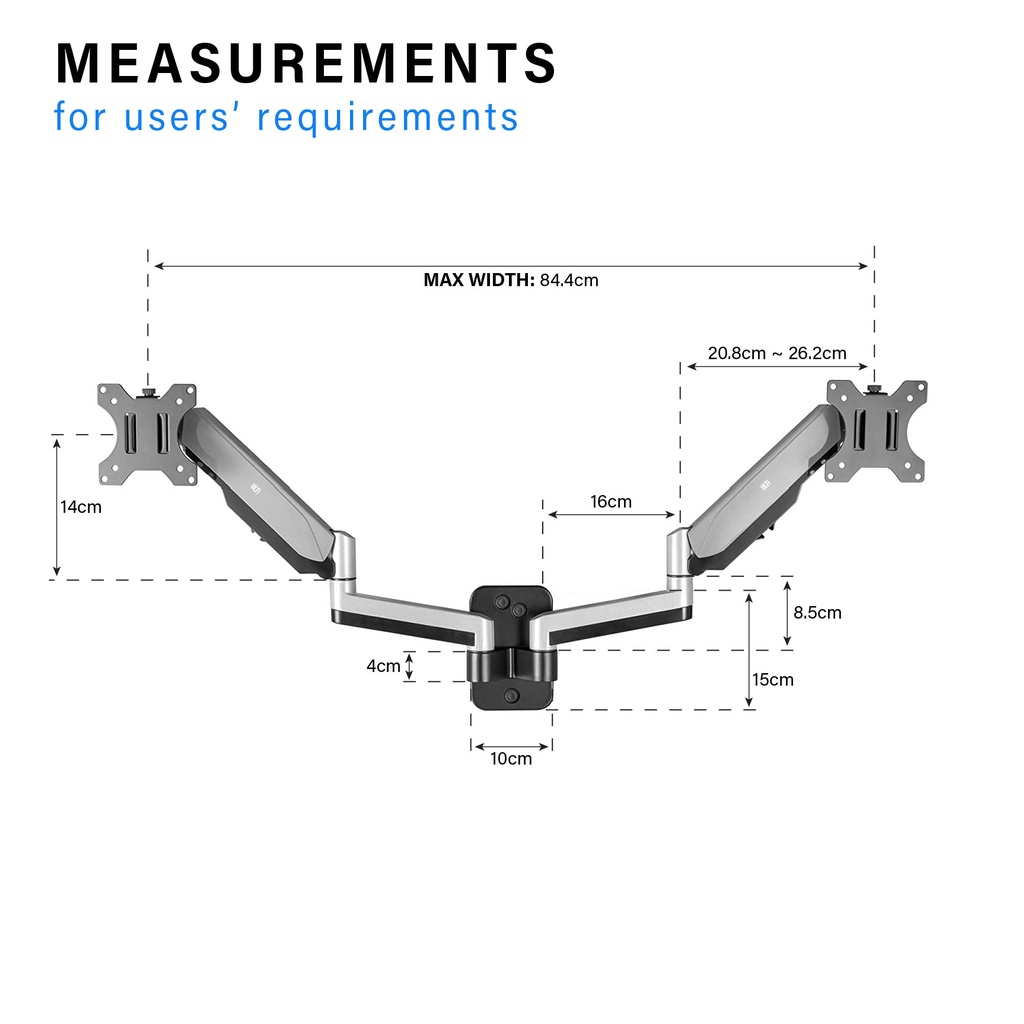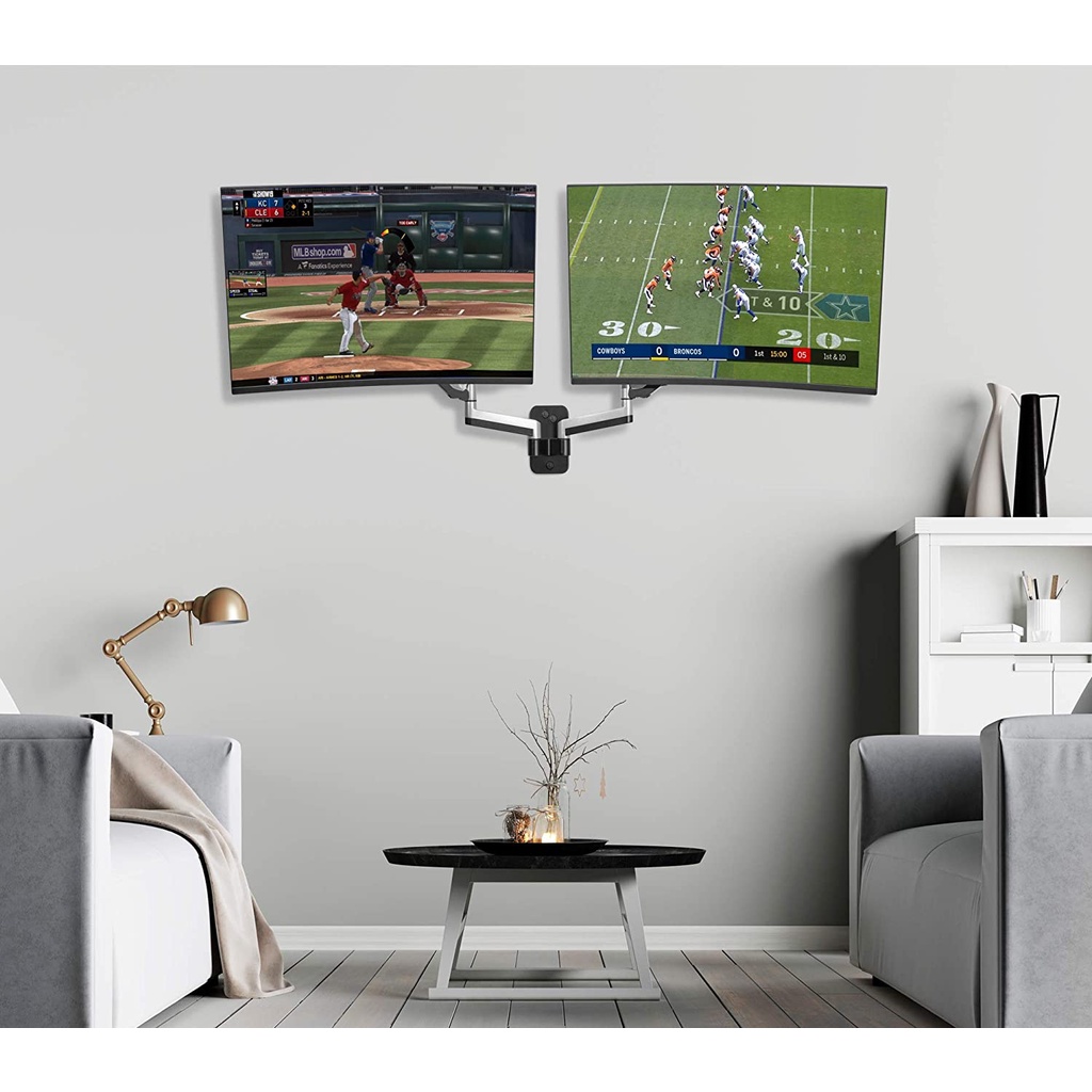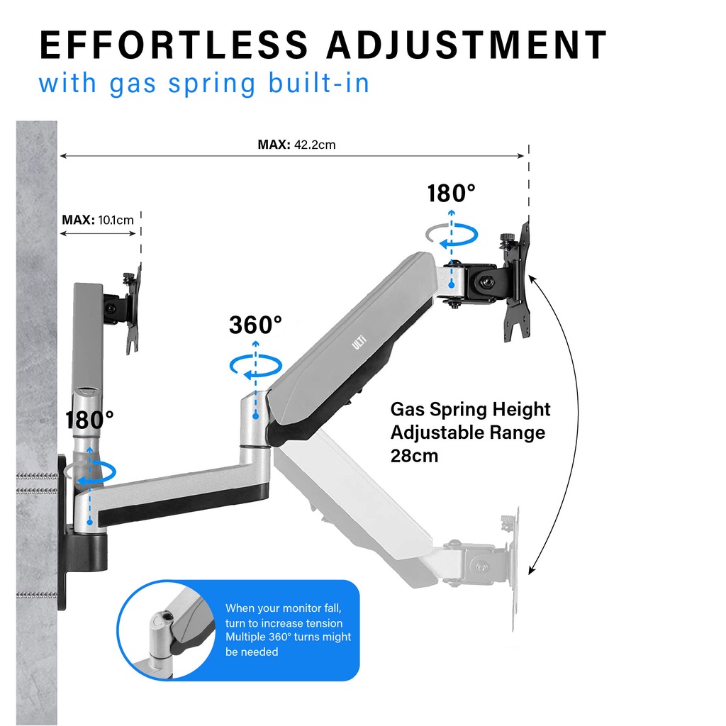 Ulti双监视器壁挂式,燃气弹簧内置全运动臂,用于平面和弯曲的屏幕,VESA,电缆管理,32'