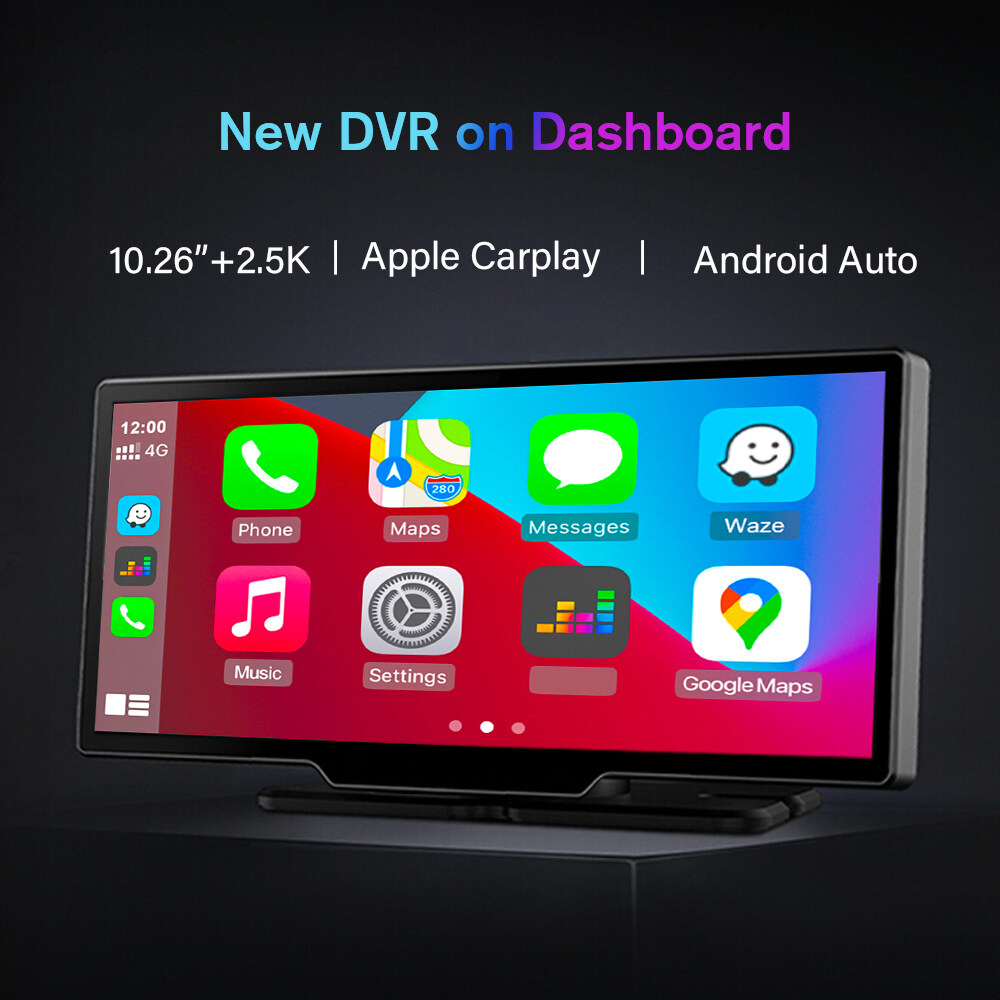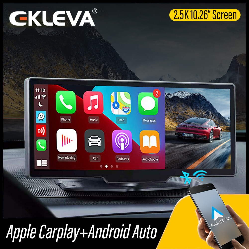 ekleva 10.26英寸汽车DVR 4K GPS仪表板摄像头后视镜仪表板双镜头驾驶录音机支持CARPLAY