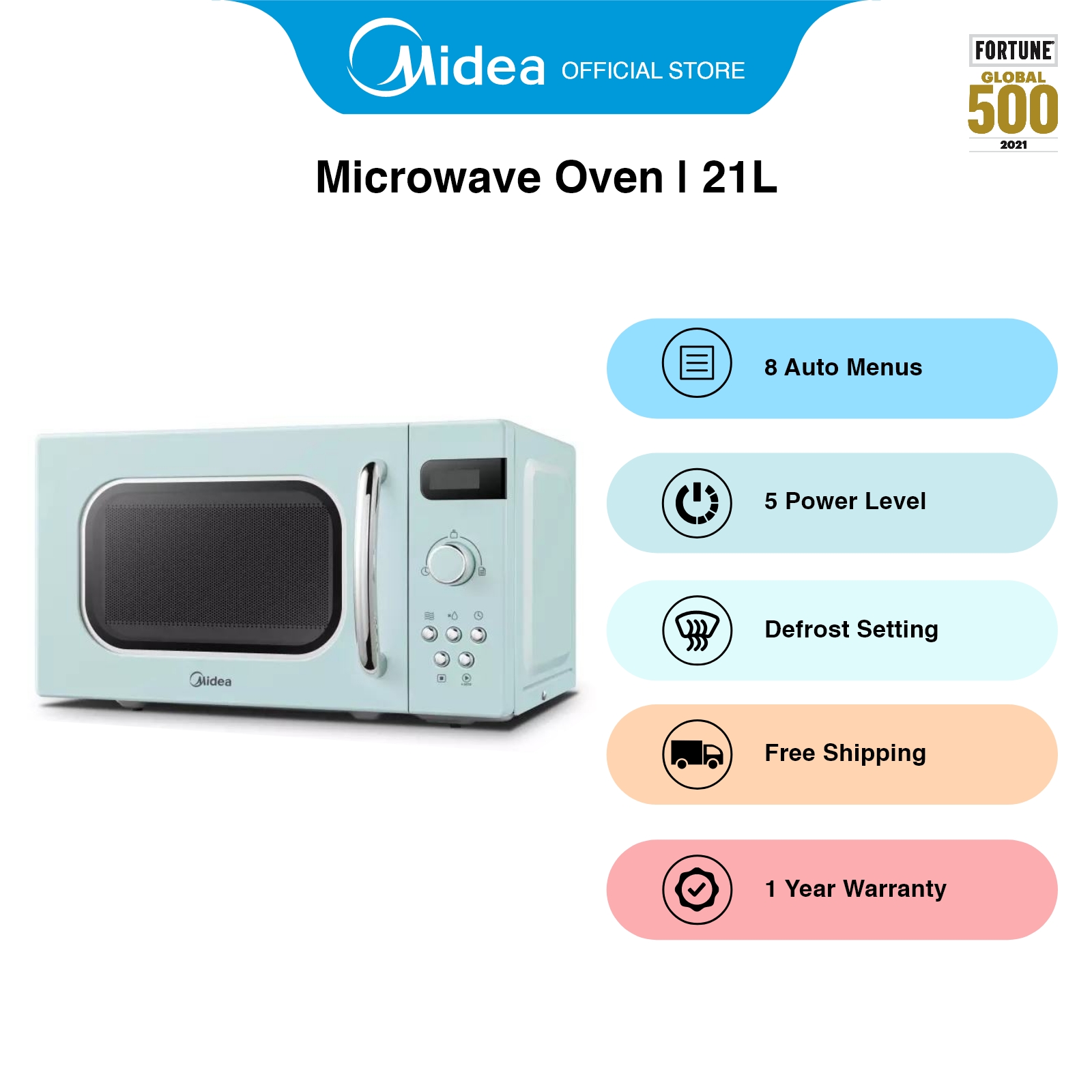 MIDEA AM820C2RA光复古绿色快速除霜微波炉,21L