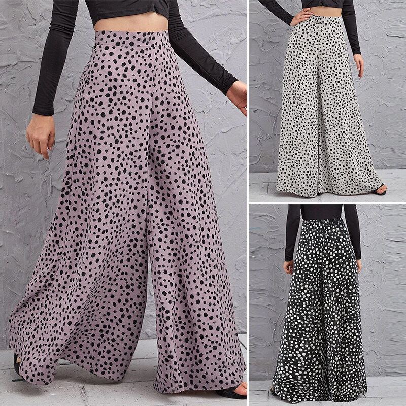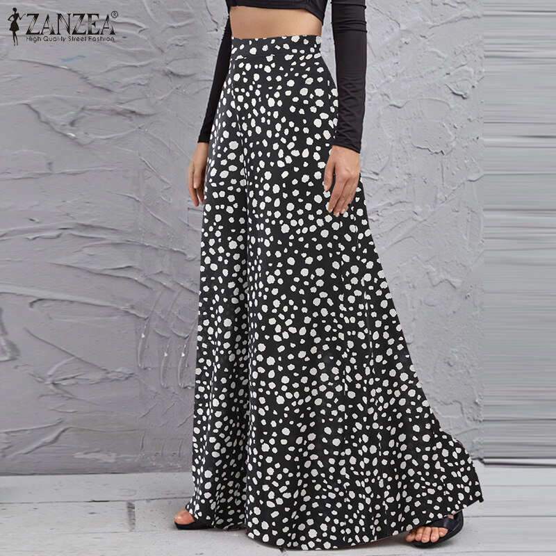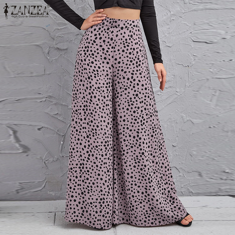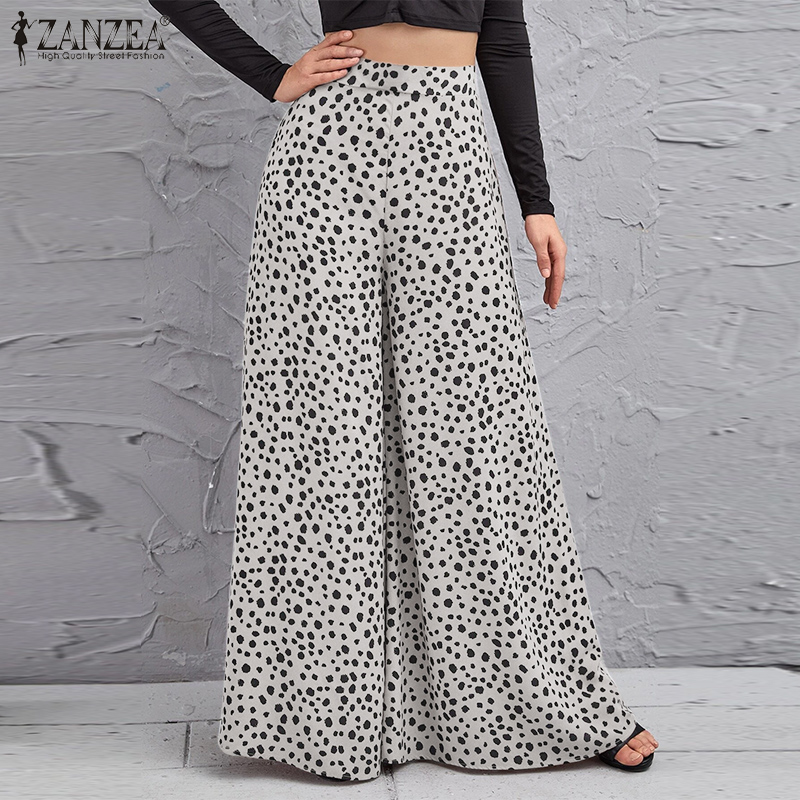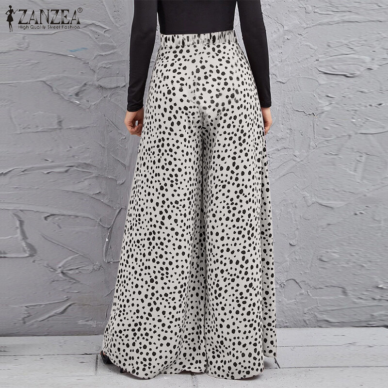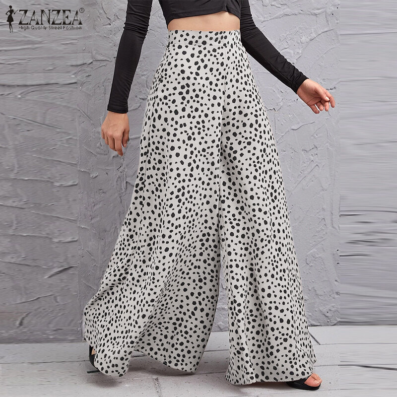 Zanzea妇女时尚弹性腰部宽腿度假裤圆点长裤