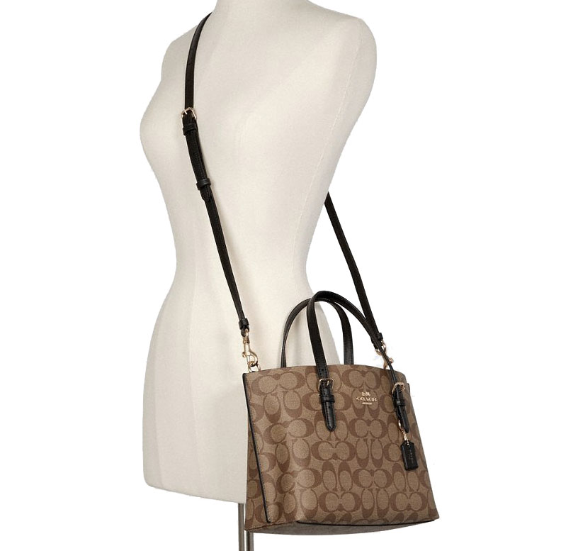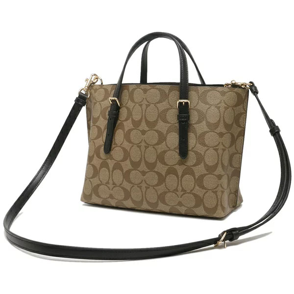 礼品盒中的教练手提包越野手提袋Mollie手提袋25在签名帆布卡其布黑色#C4250