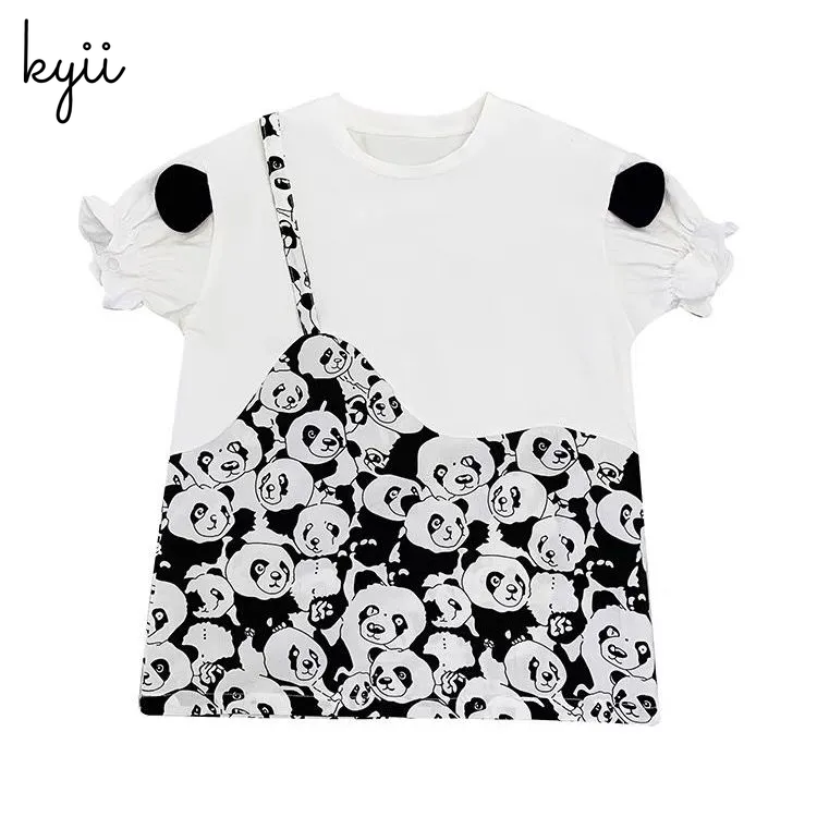 Kyii女孩时尚短袖公主动物图案礼服Ky220011