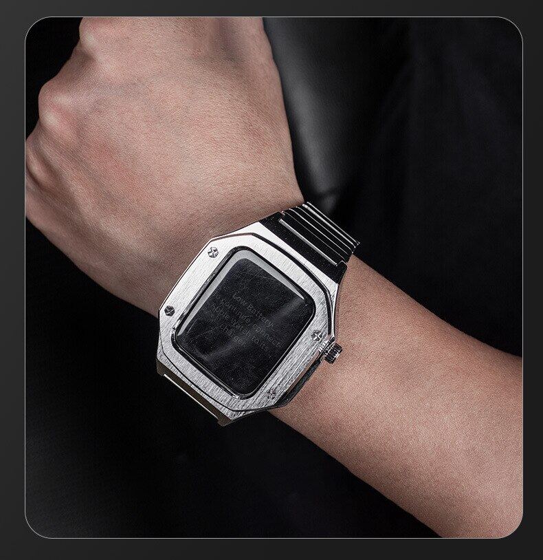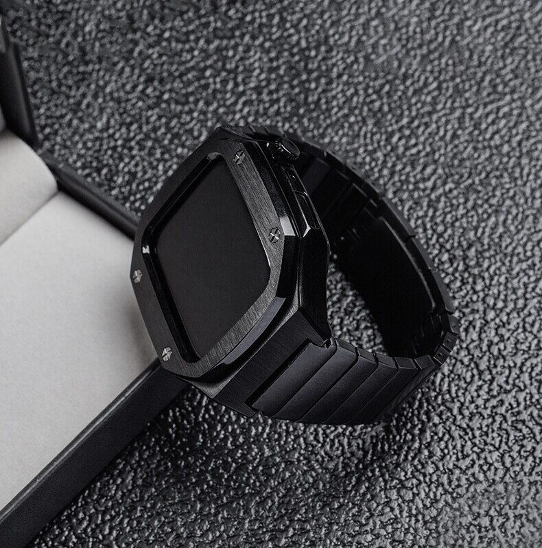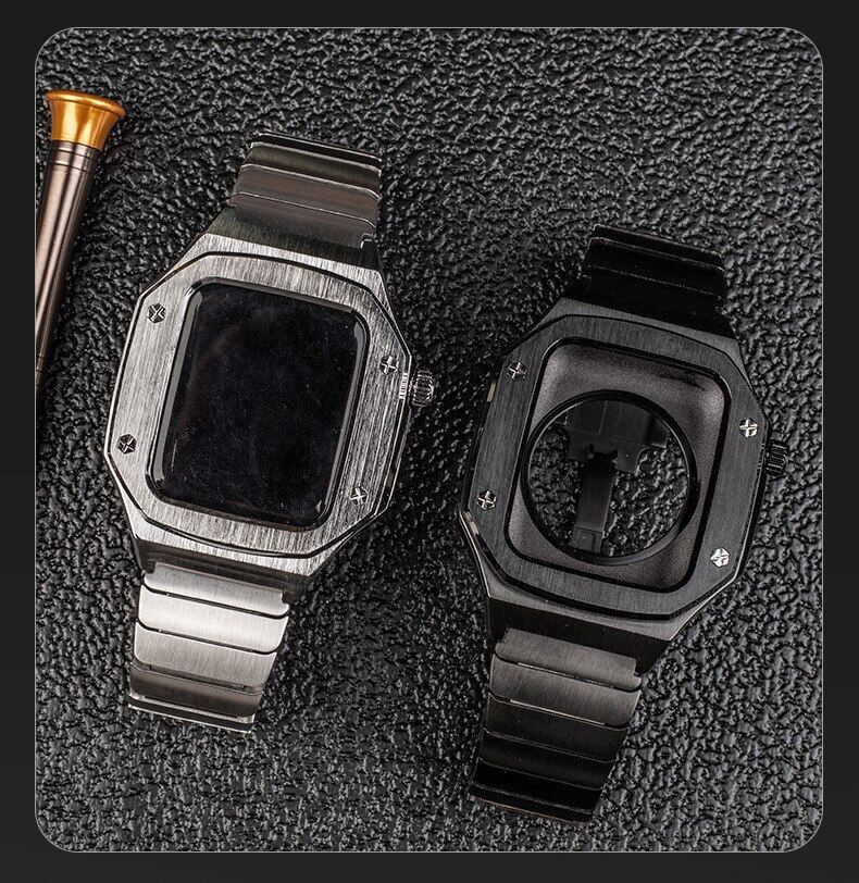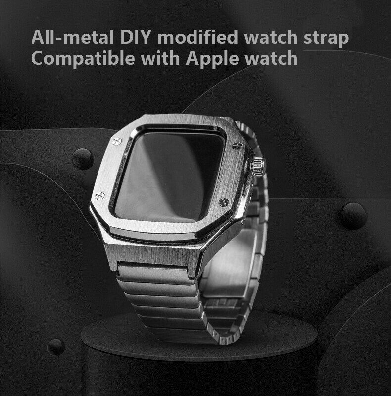 45mm 44mm不锈钢金属外壳 + Apple Watch的表带8 7皮革带i观看系列6 SE 5 4修改套件