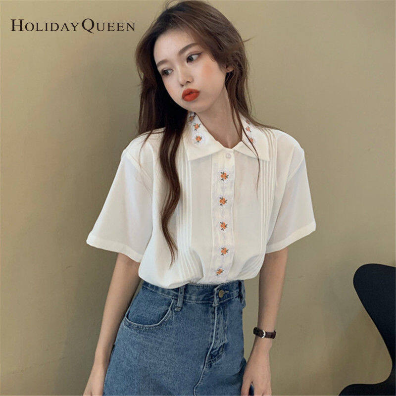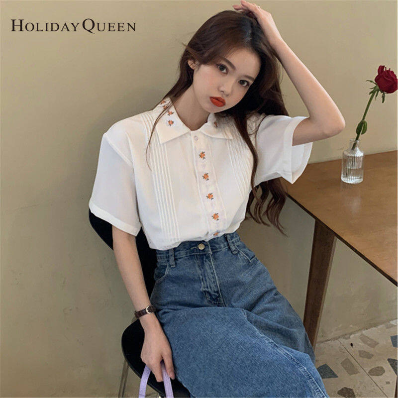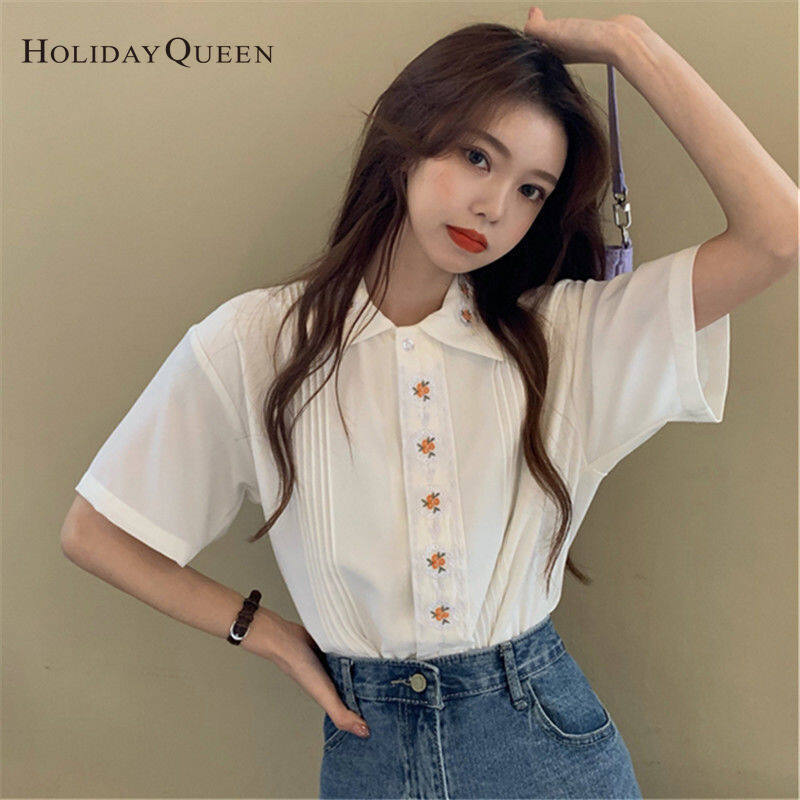 假日女子夏季白色衬衫女士设计意义上的顶级夏季短袖衬衫件服装HQP0903