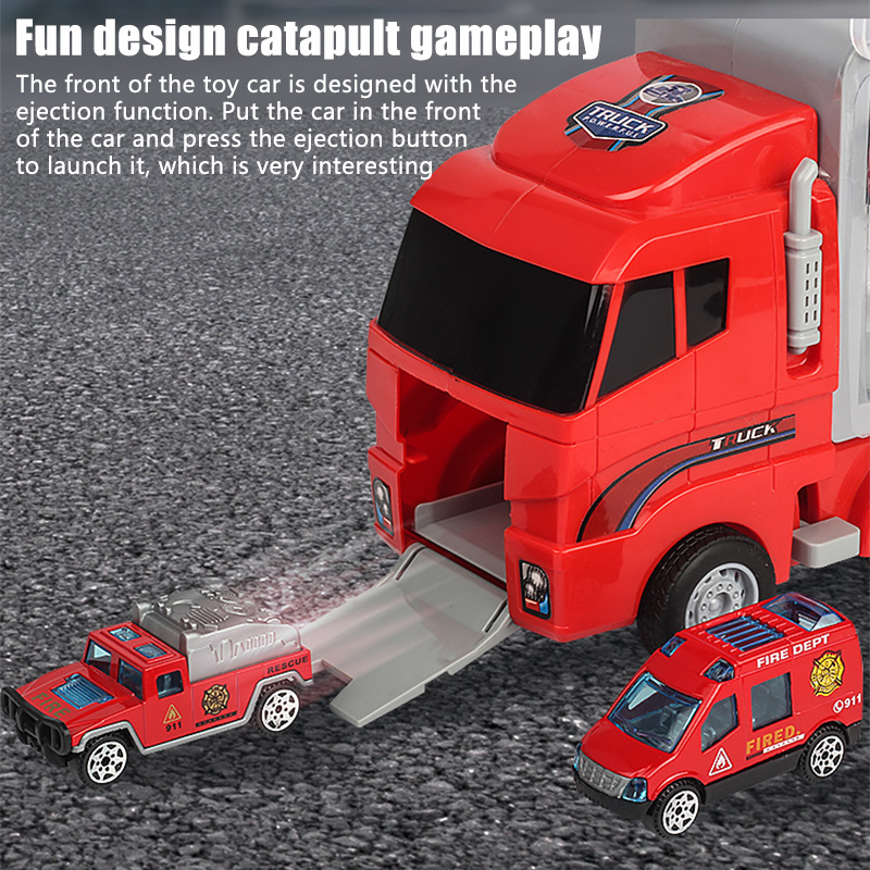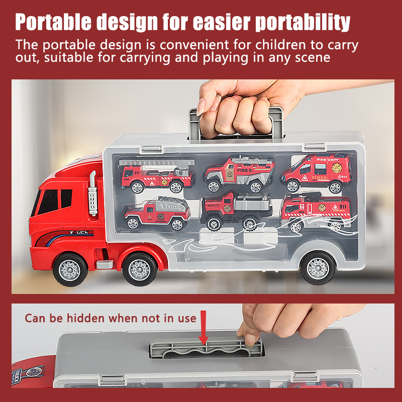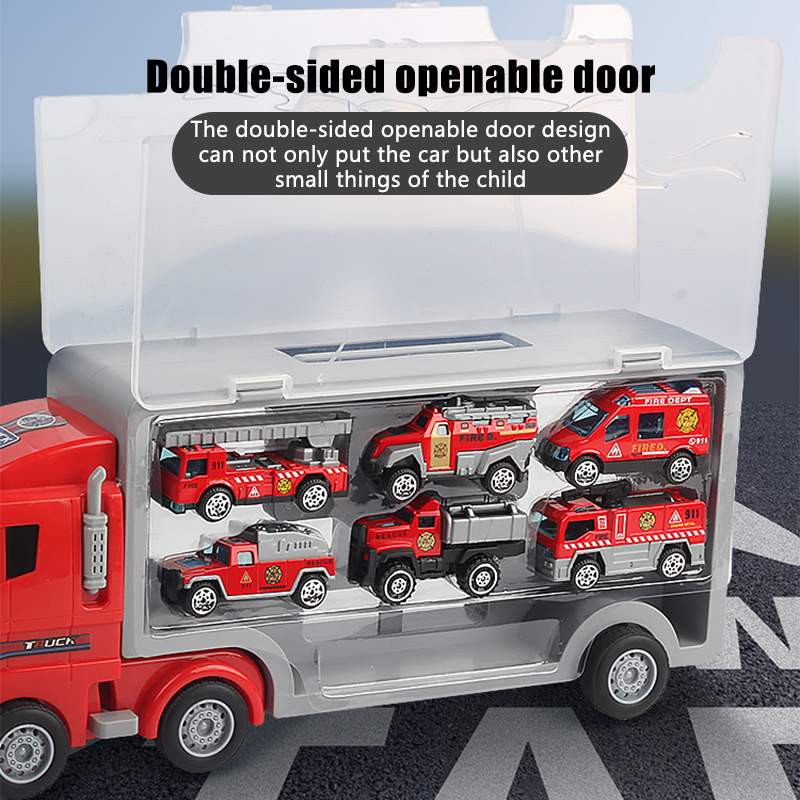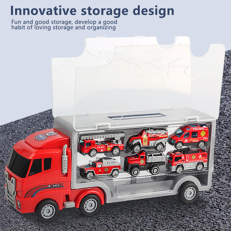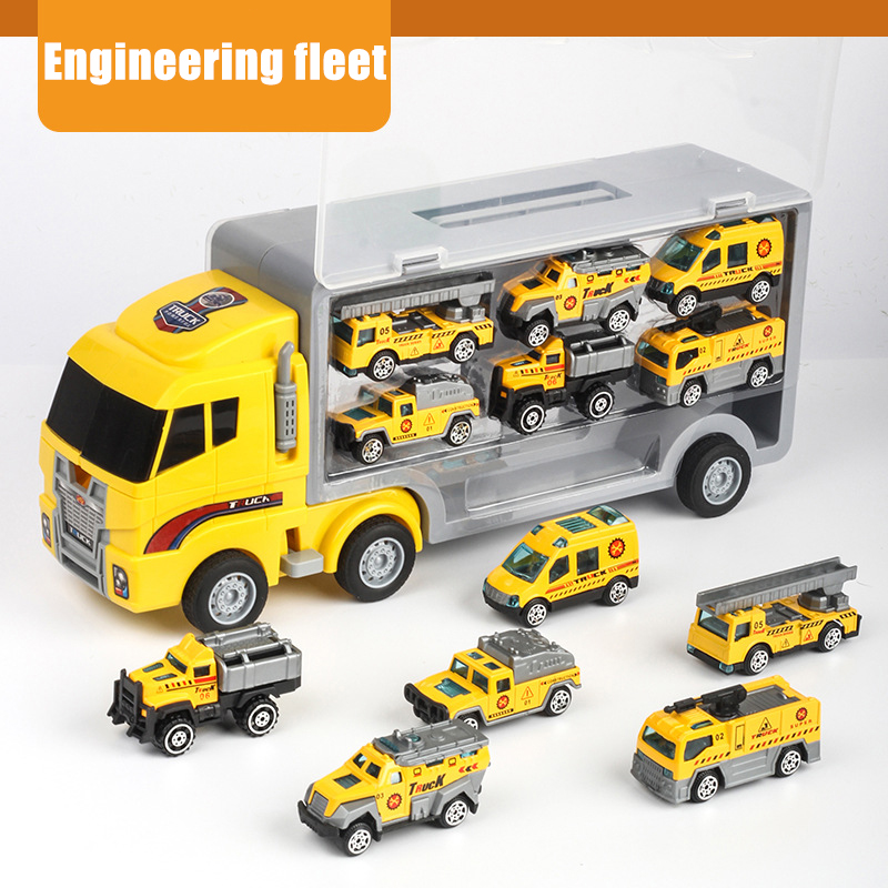 大儿童储物容器卡车合金拉力仿真消防车工程汽车警车男孩玩具