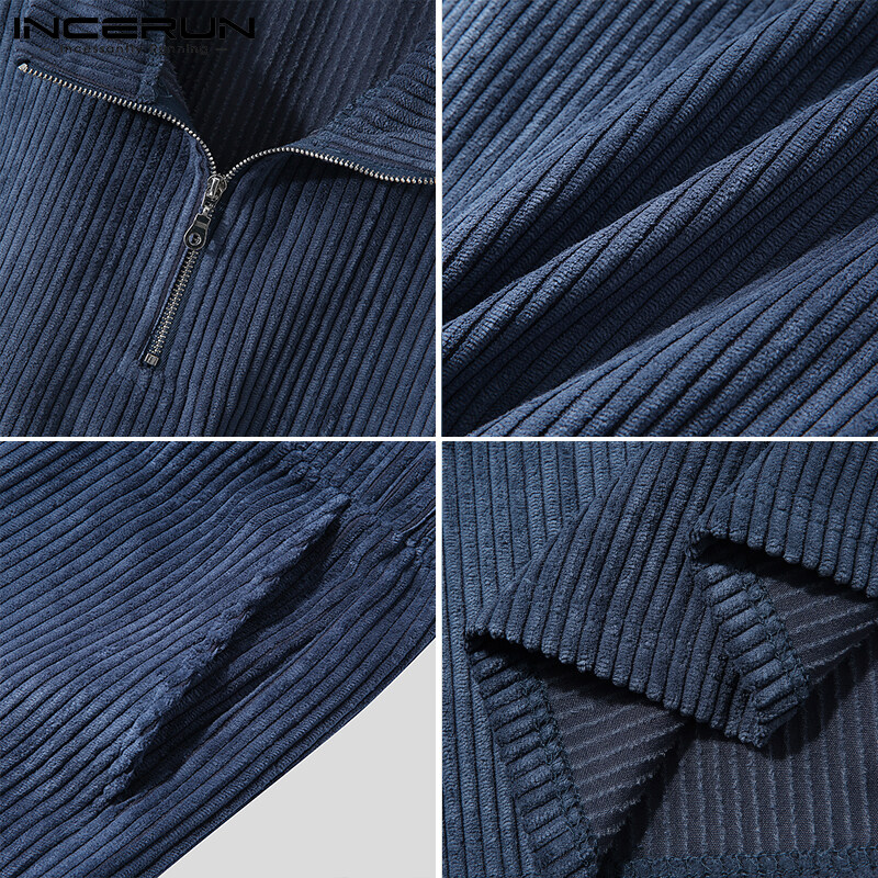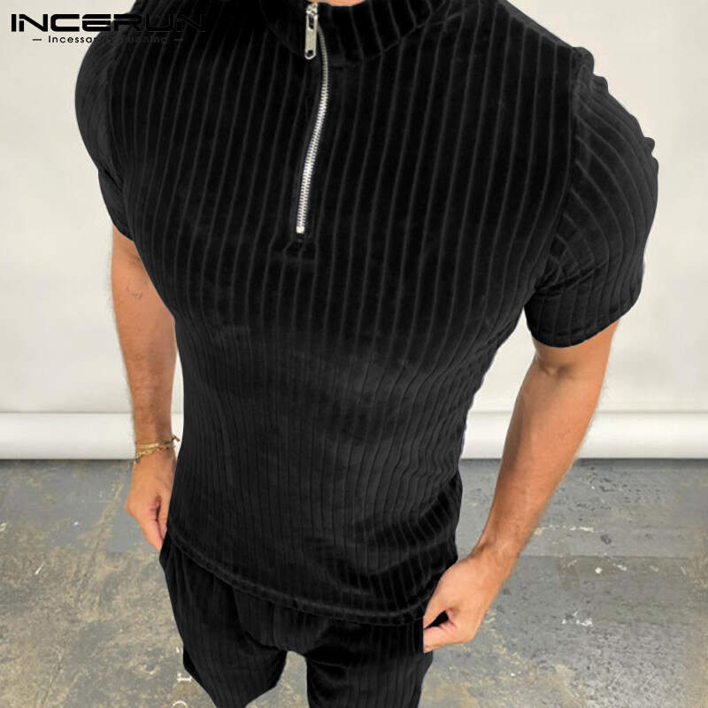 Beehoo Incerun男士短袖拉链套装短裤适合睡衣内衣(西方风格)