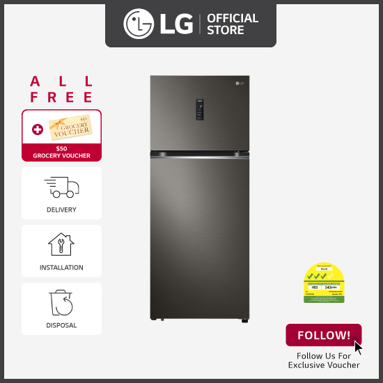 [预订] [Bulky] LG GT-B3952BL顶部冰柜冰箱带有逆变器压缩机,395L,黑色钢 +免费$ 50杂货券 +免费送货 +免费安装 +免费安装 +免费处置[从5月5日起]