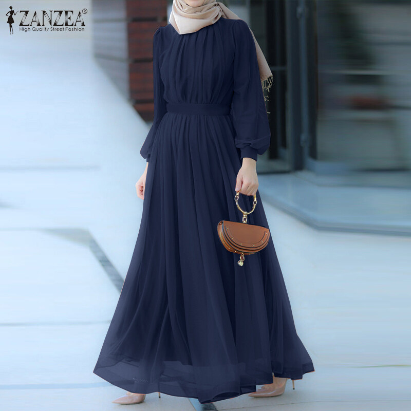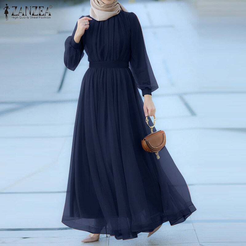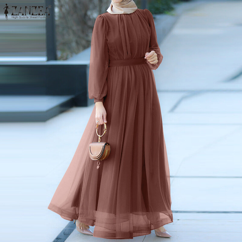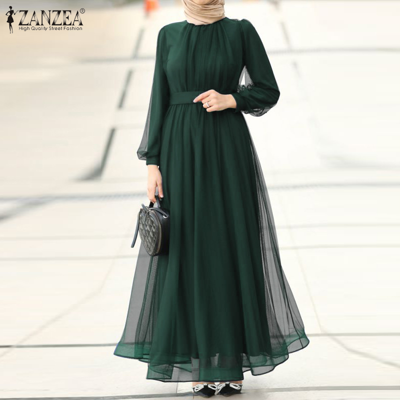 Zanzea穆斯林妇女穆斯林长袖线网状纯粹的优雅舞会长裙