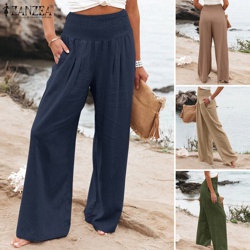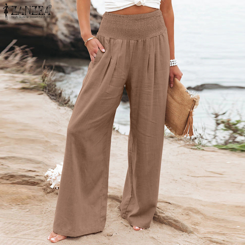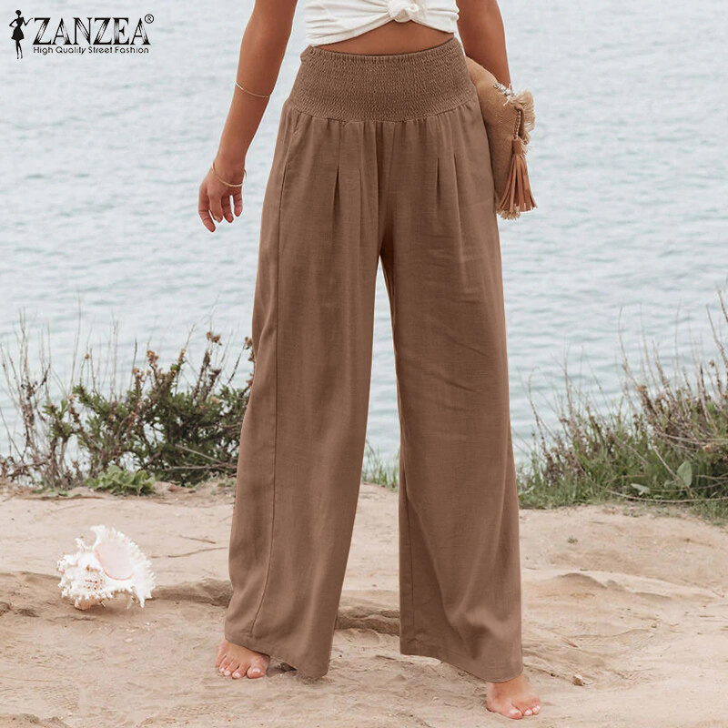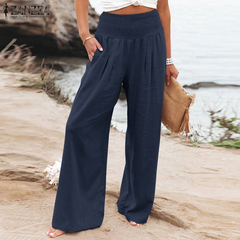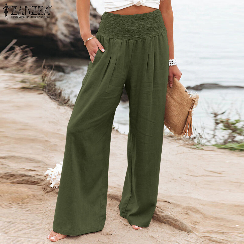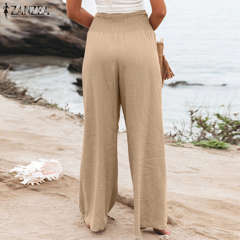 Zanzea妇女商务办公室Chino Long Pants紧身胸衣Smocked Loods Slacks Slacks Plus Plus